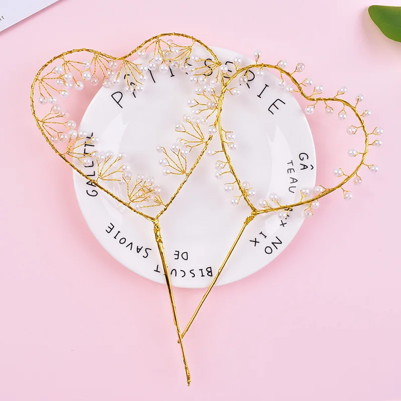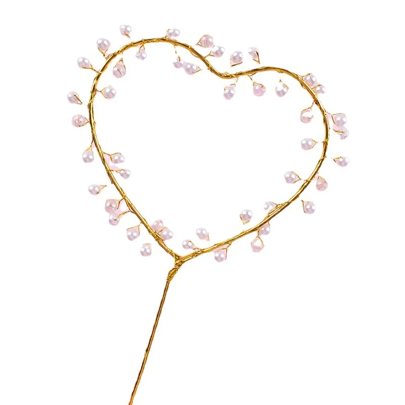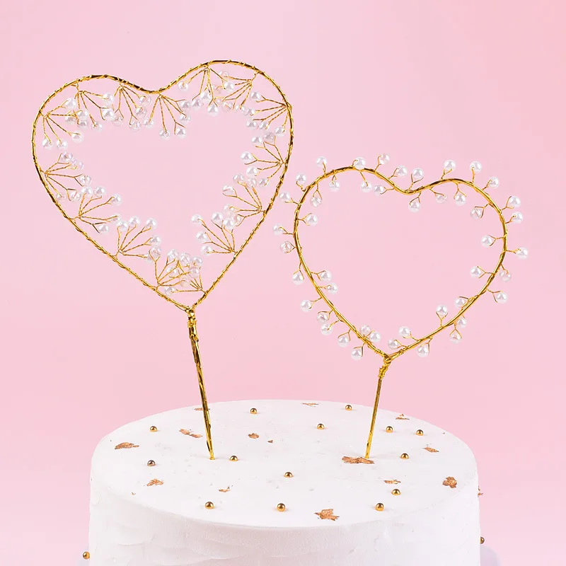 Beautiful Birthday Cake Decoration Wrought Iron Pearl Love Wedding Party Dessert Table Decoration Pearl Love Cake Topper