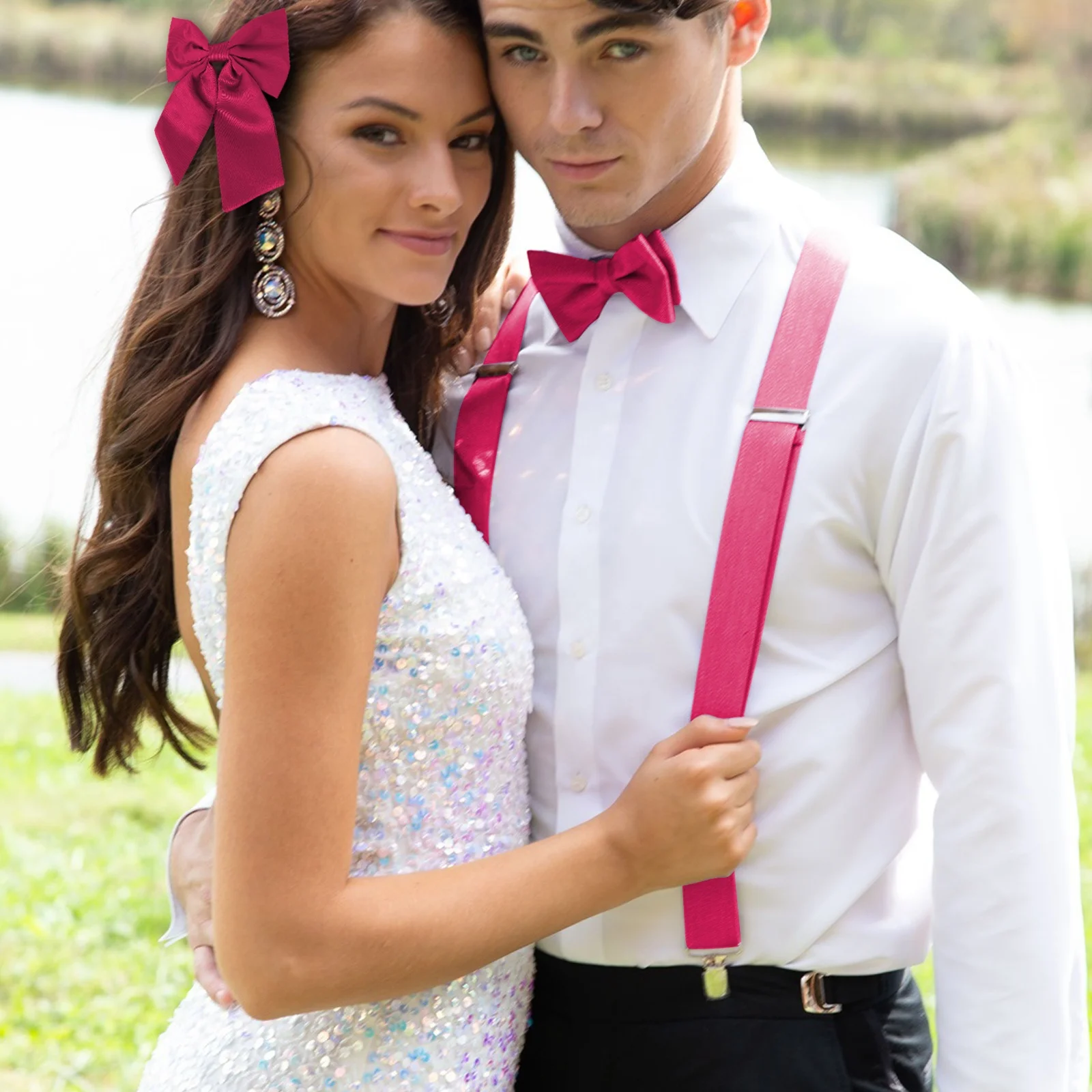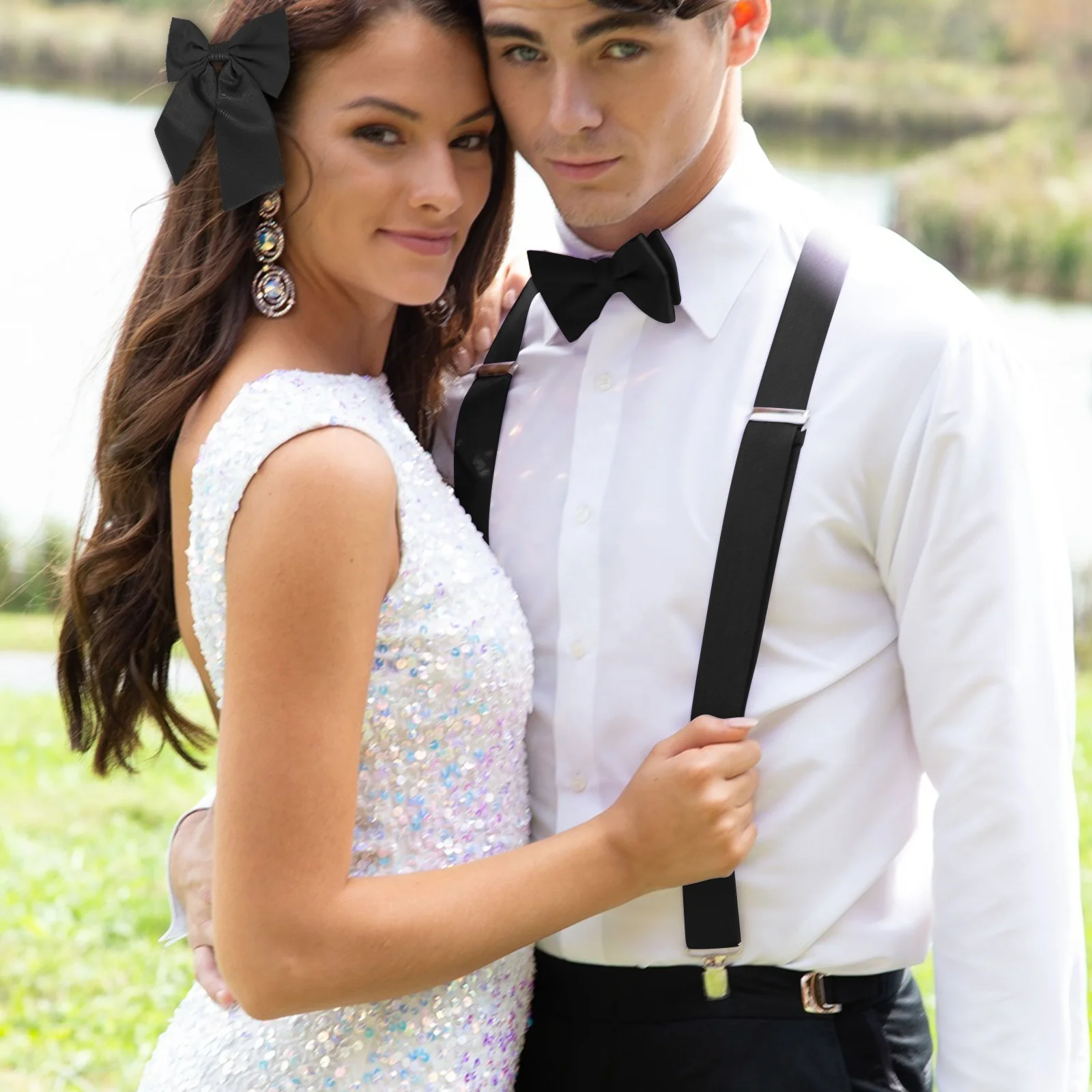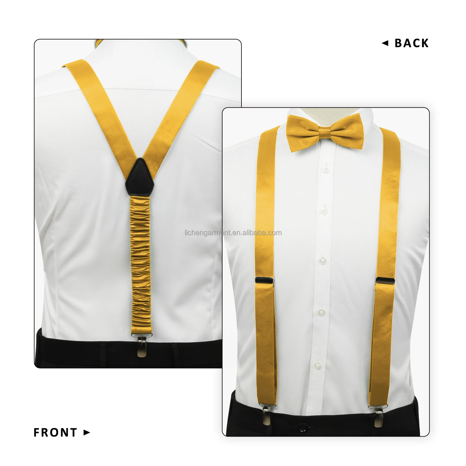 Solid Color Men's 4pcs Leather Suspender Paisley Adjustable Brace Handkerchief Hair Accessories Bowtie Set 3 Clips Wedding Party