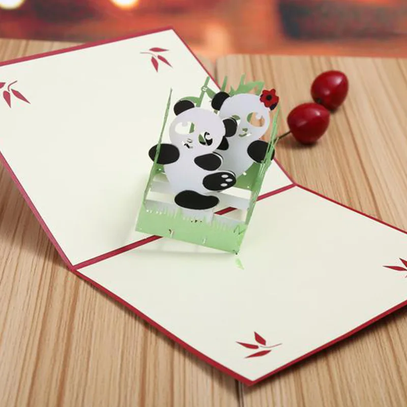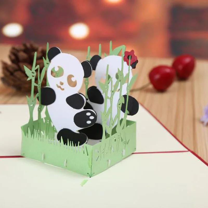 3D Paper Sculpture Panda three-dimensional Creative Hollow Greeting Card Children's Birthday Greeting Card Custom LOGO