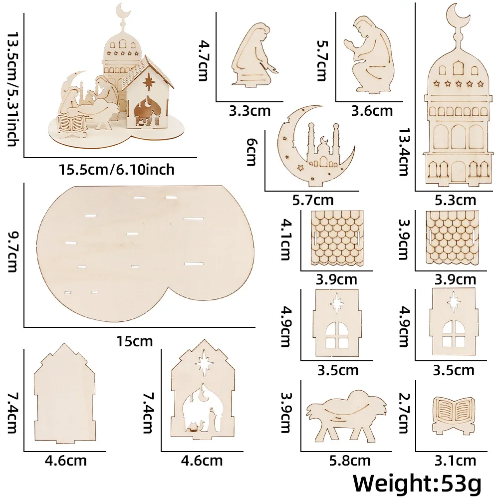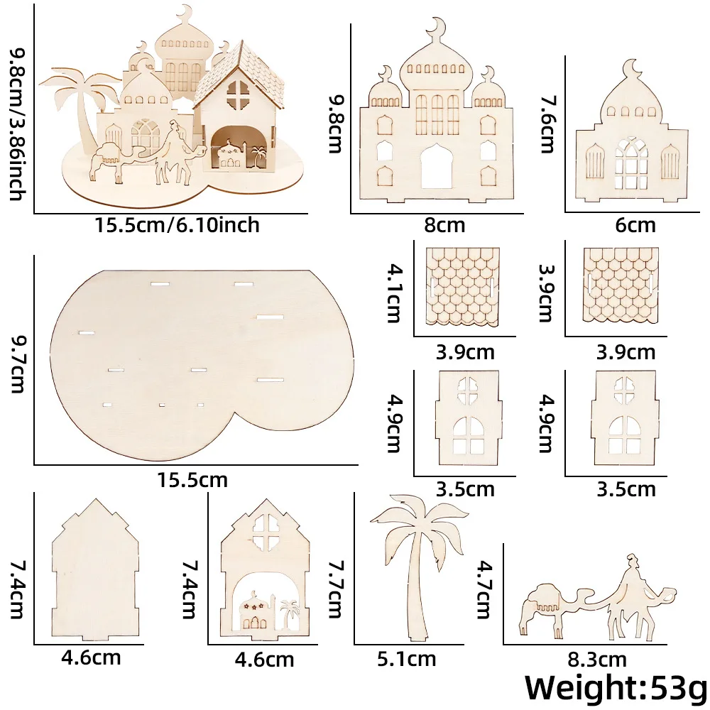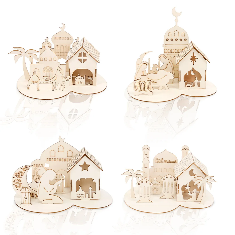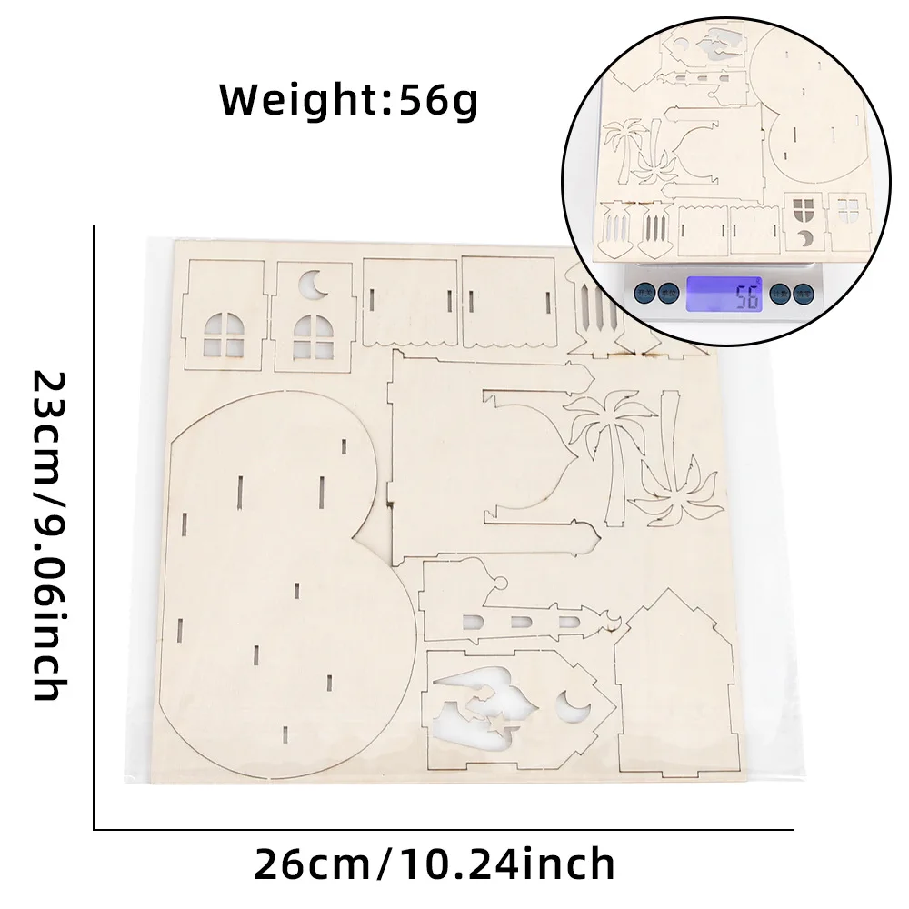New Ramadan Castle Puzzle Ornaments Wooden Crafts Middle East Moon Festival Children's Handmade DIY Three-dimensional Puzzle