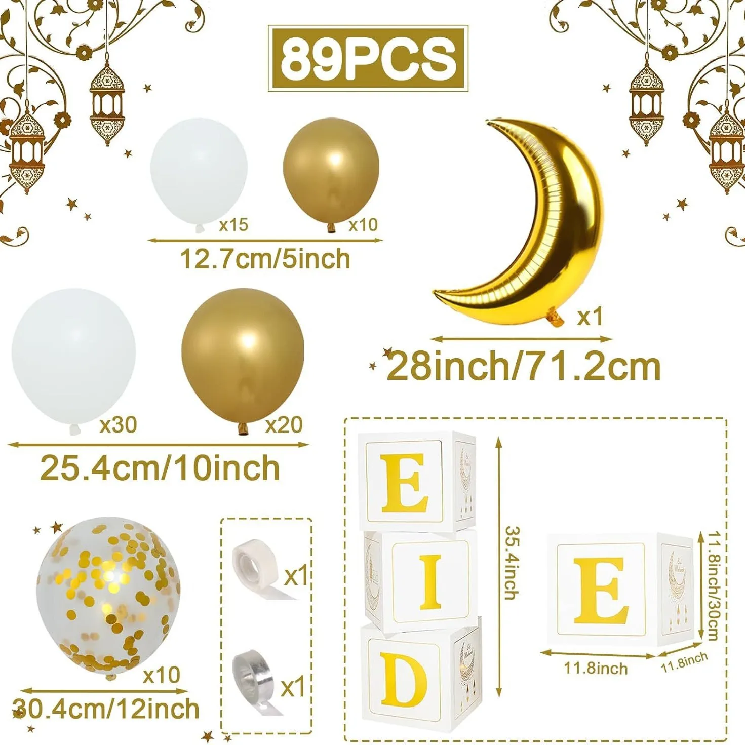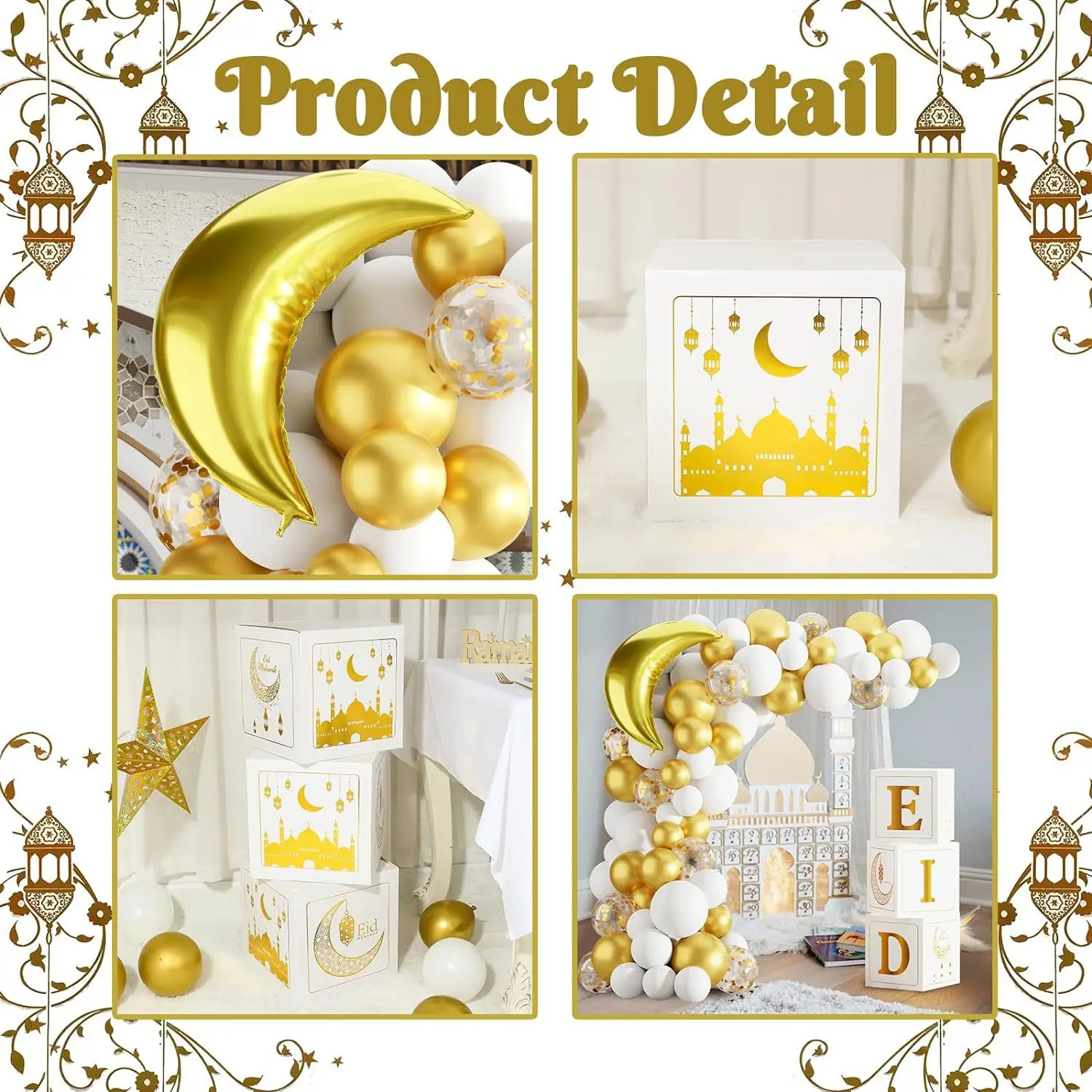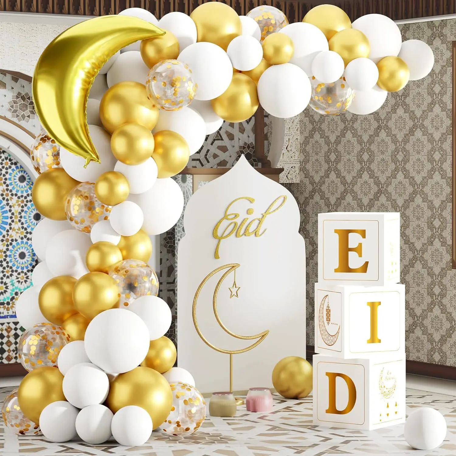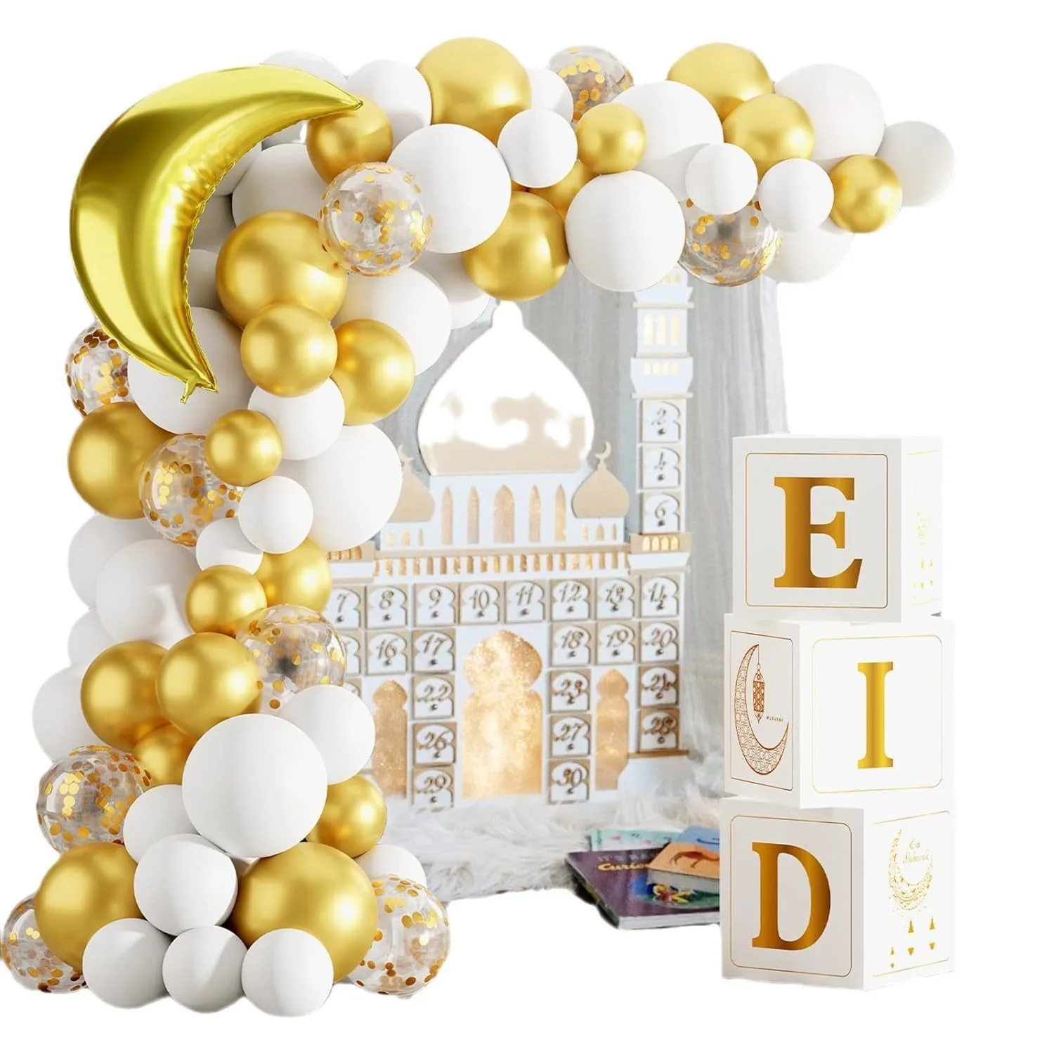 2024 Balloon Decoration 89 Ramadan Mubarak Balloon Arch with Stars Moon Balloon Box Party Supplies Decoration