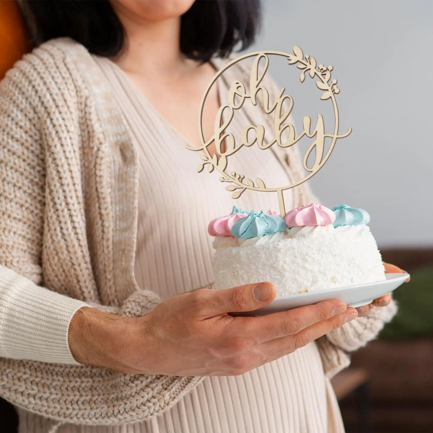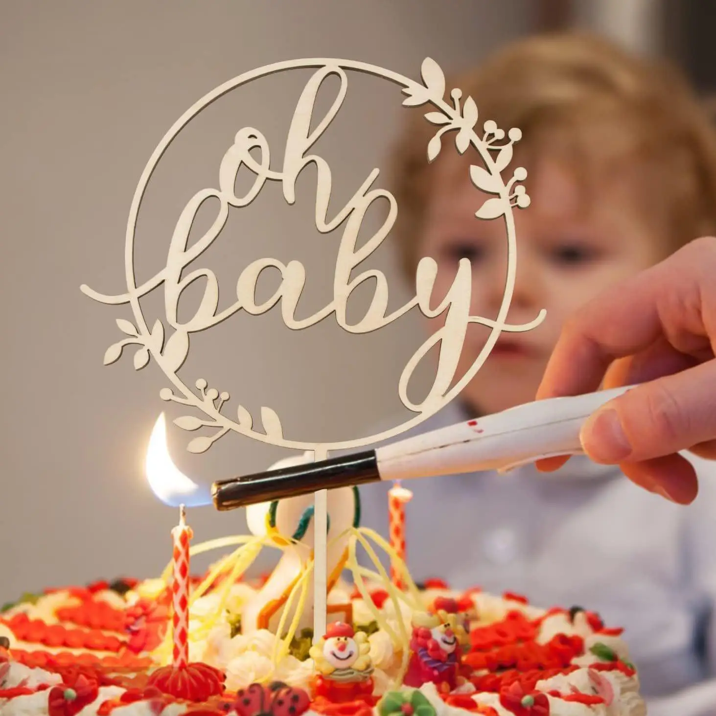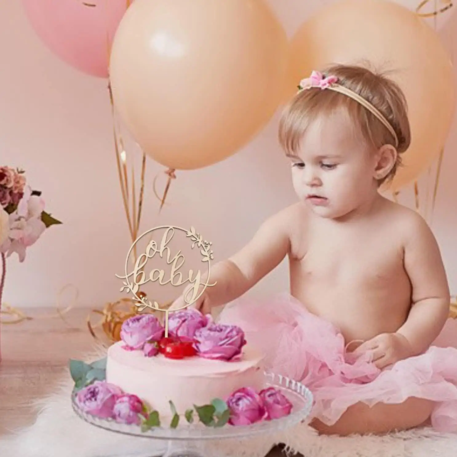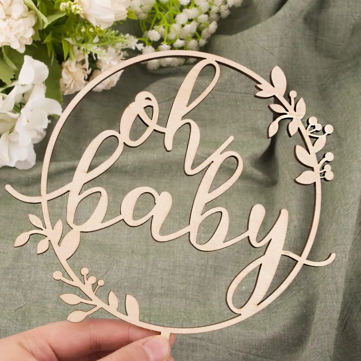 Wooden Socket Oh Baby Baby Shower Boy Wooden Country Bohemian Unisex Cake Decoration