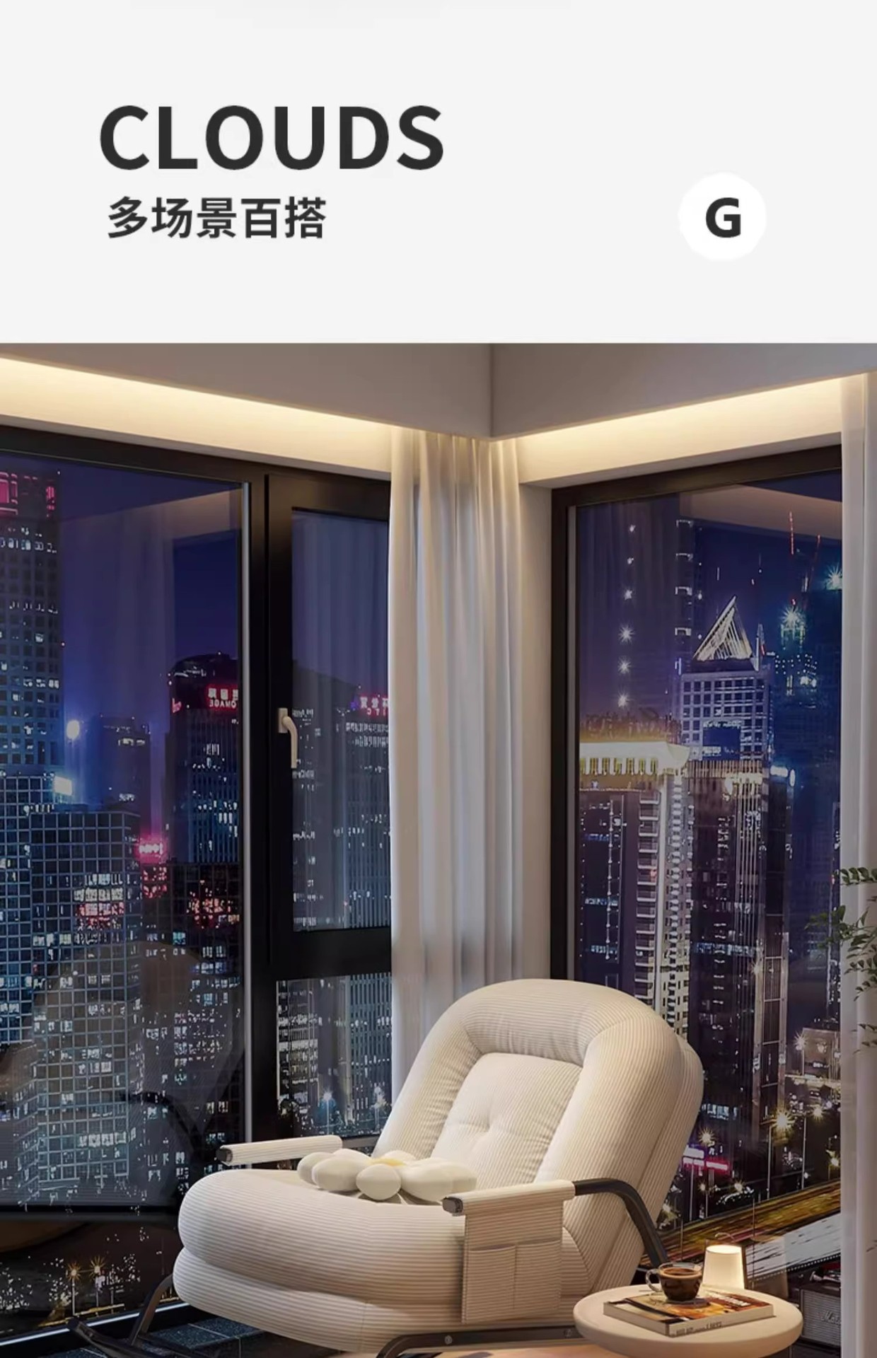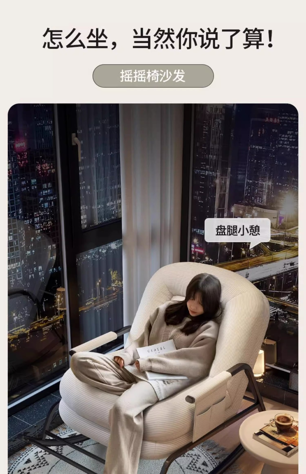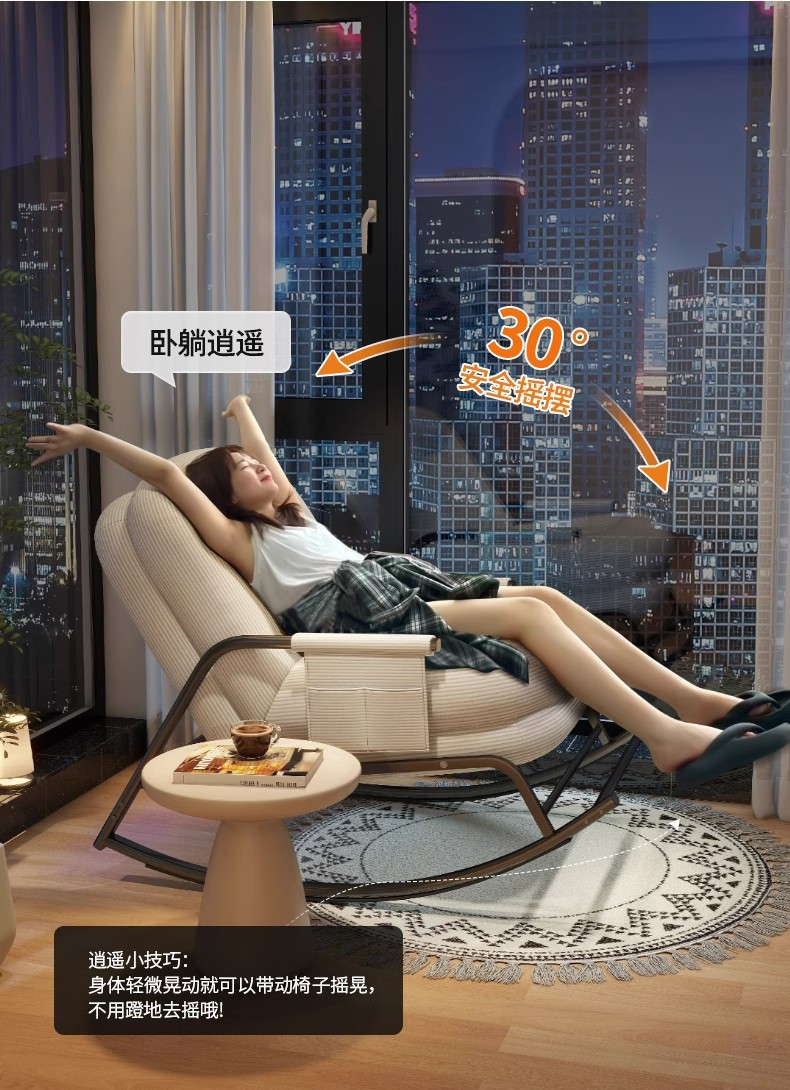 [wash-free cat scratch skin] cream white-backrest five-gear adjustable rocking chair