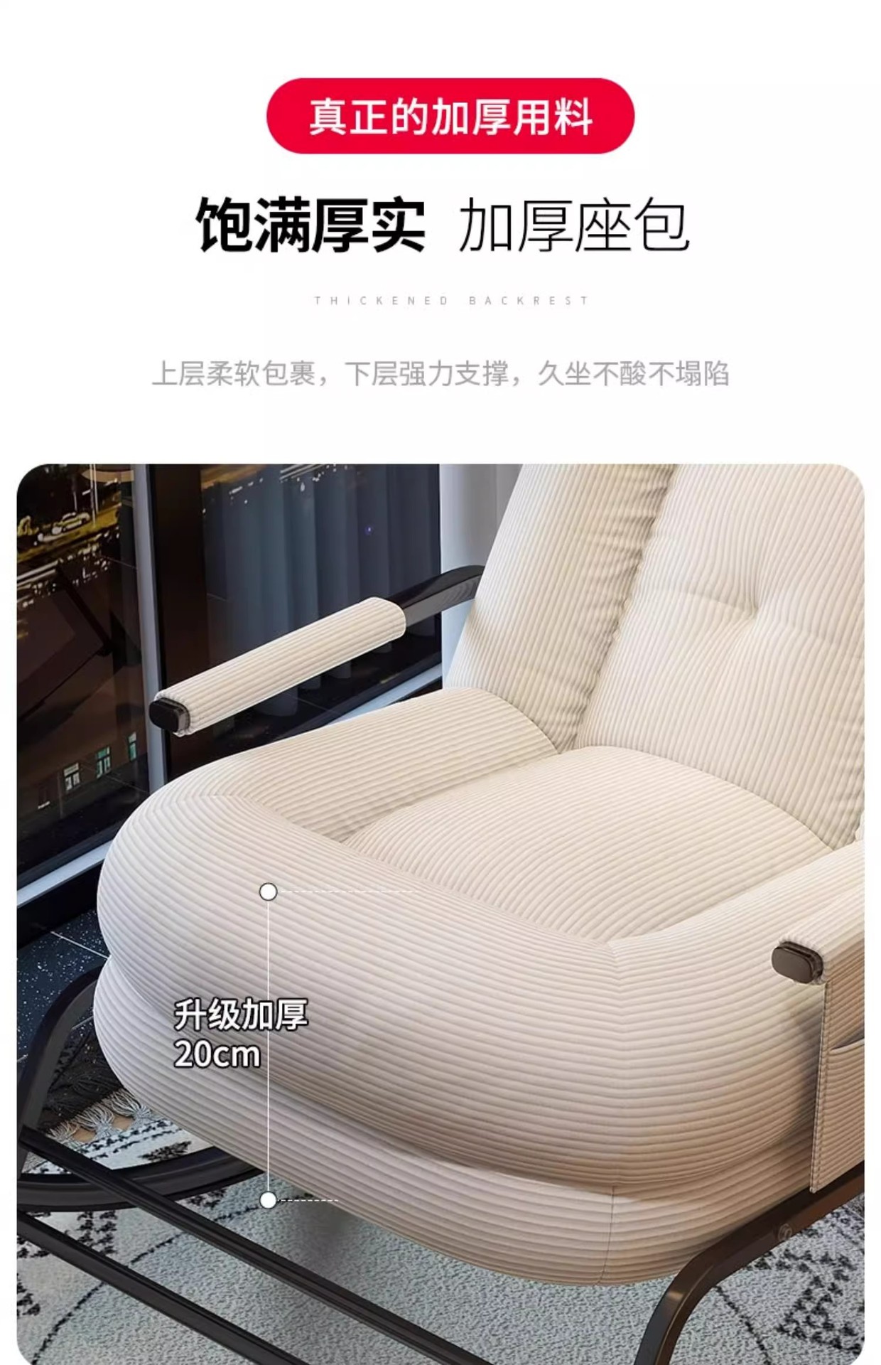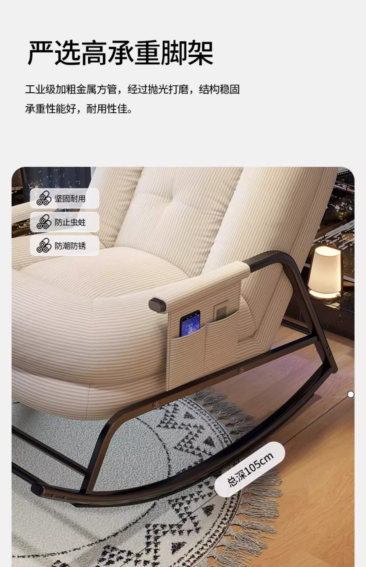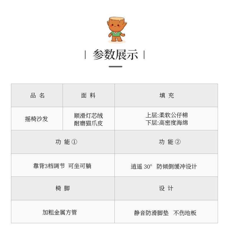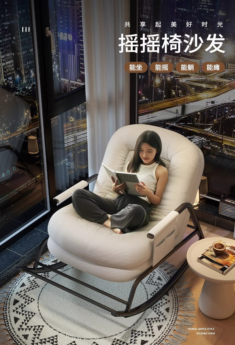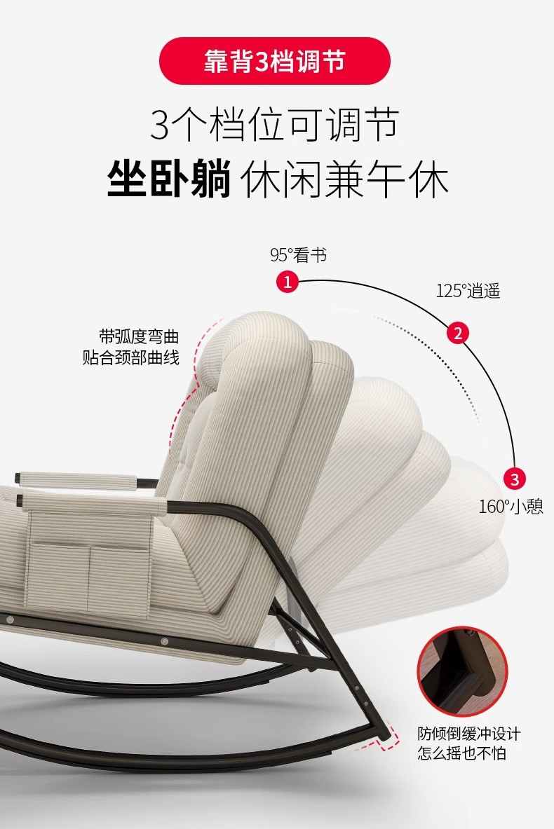 [skin-friendly corduroy] simple white-backrest five-gear adjustable rocking chair