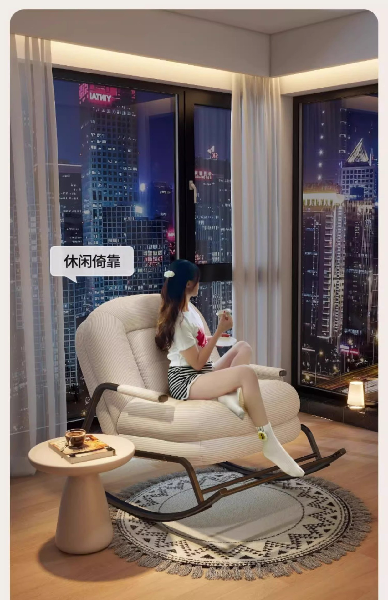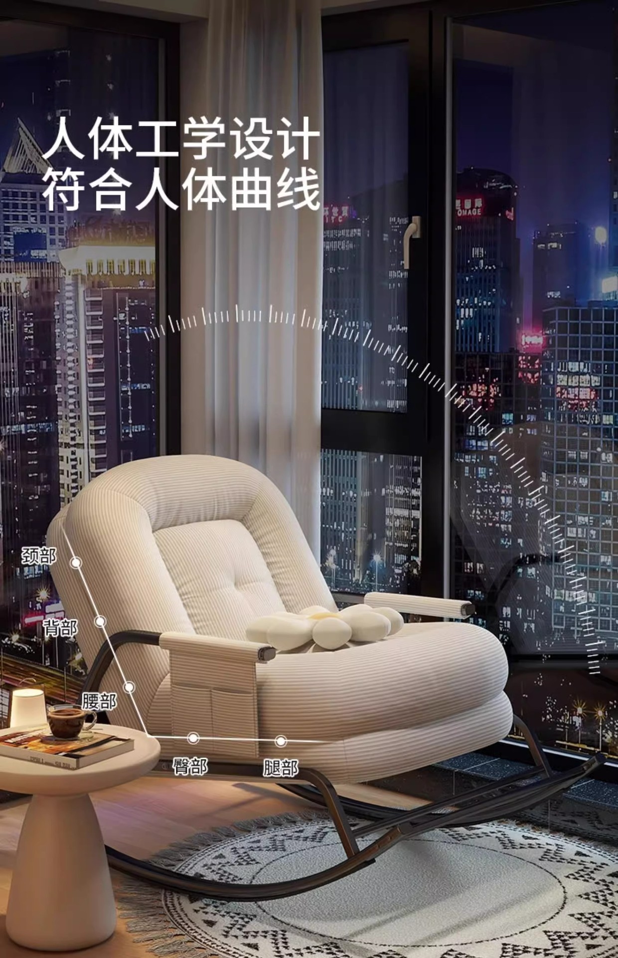 [super soft lambswool] gentle white-backrest five-gear adjustable rocking chair
