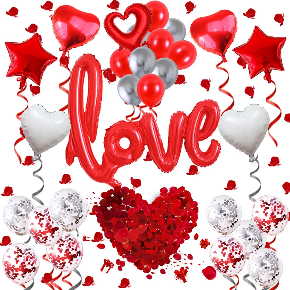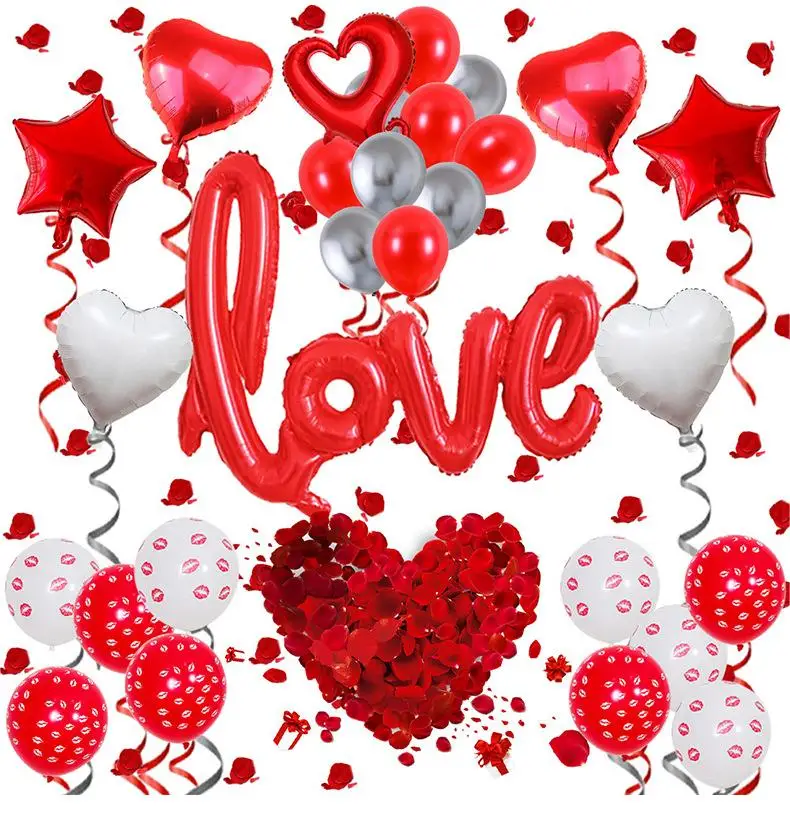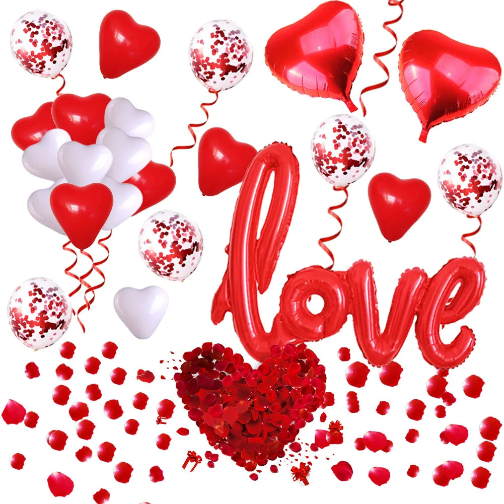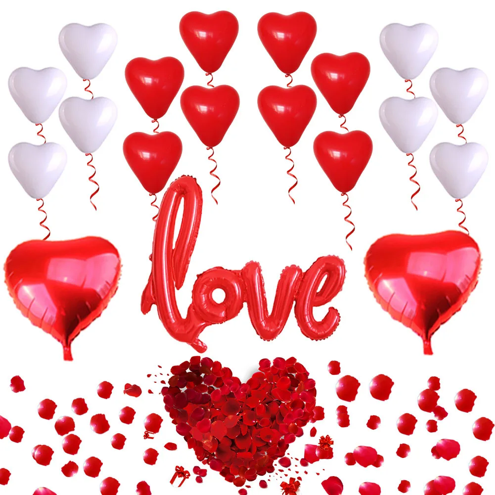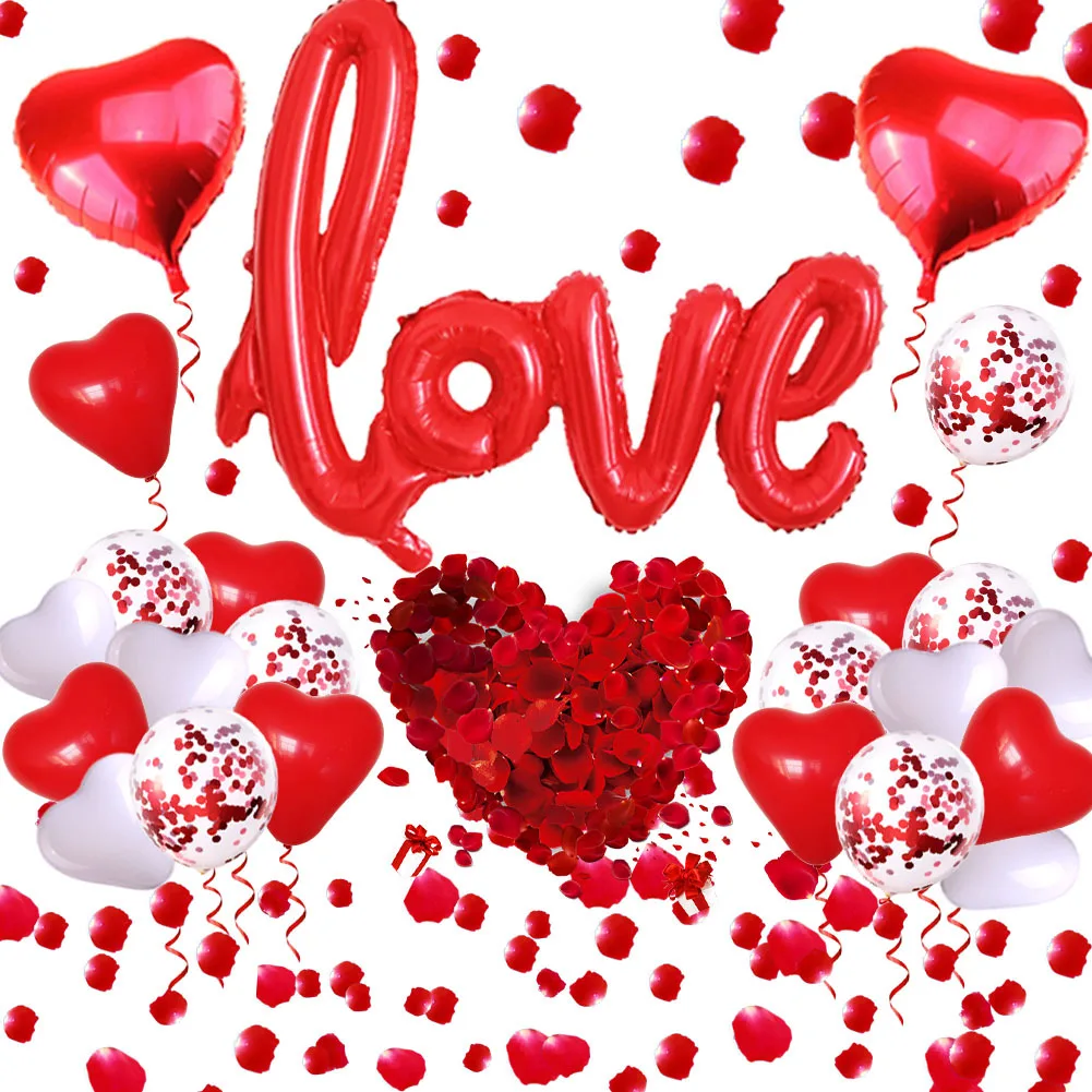 Valentine's Day Balloon Combo One-piece Love Shape Wedding Party Rose Petal Decoration Lover's Balloon Set