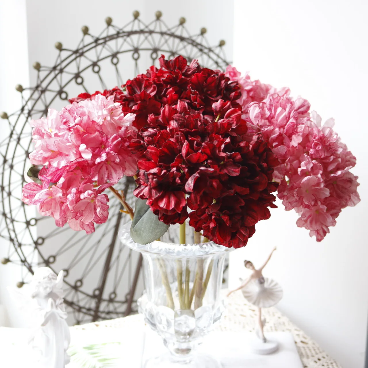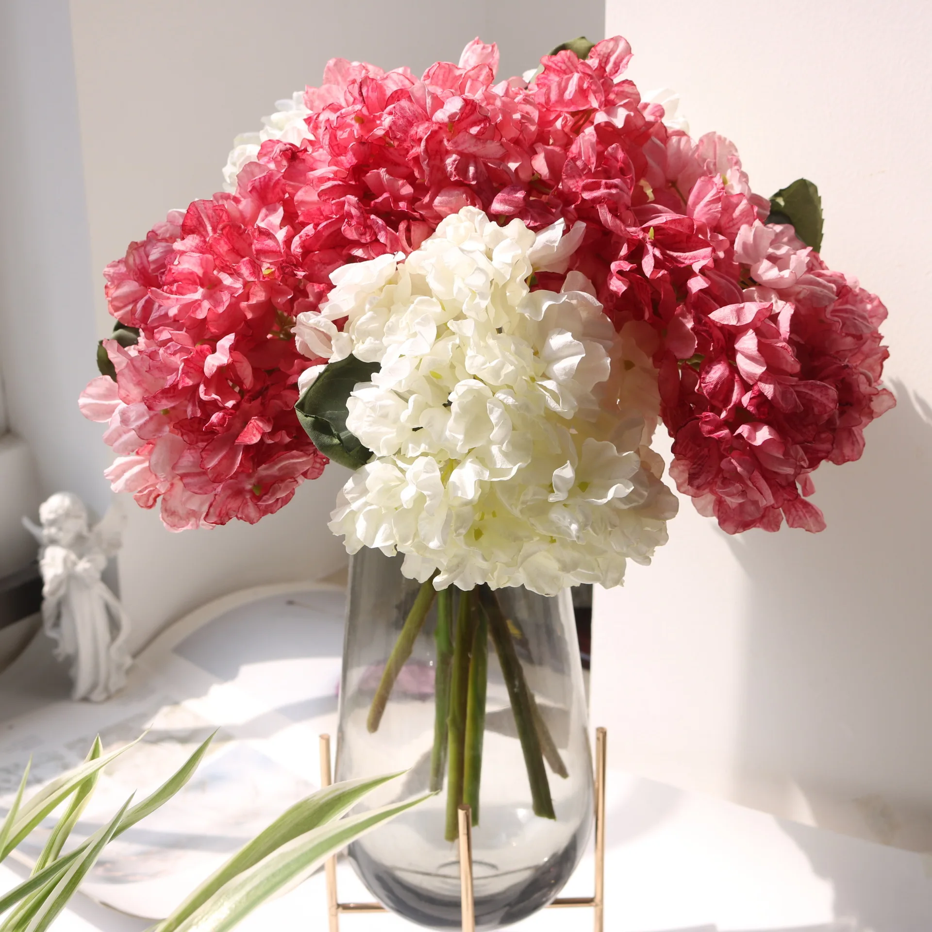 Vintage Burnt Edge Hydrangea Simulation Flower Oil Painting Coral Simulation Hydrangea Home Layout Flower Arrangement Decoration