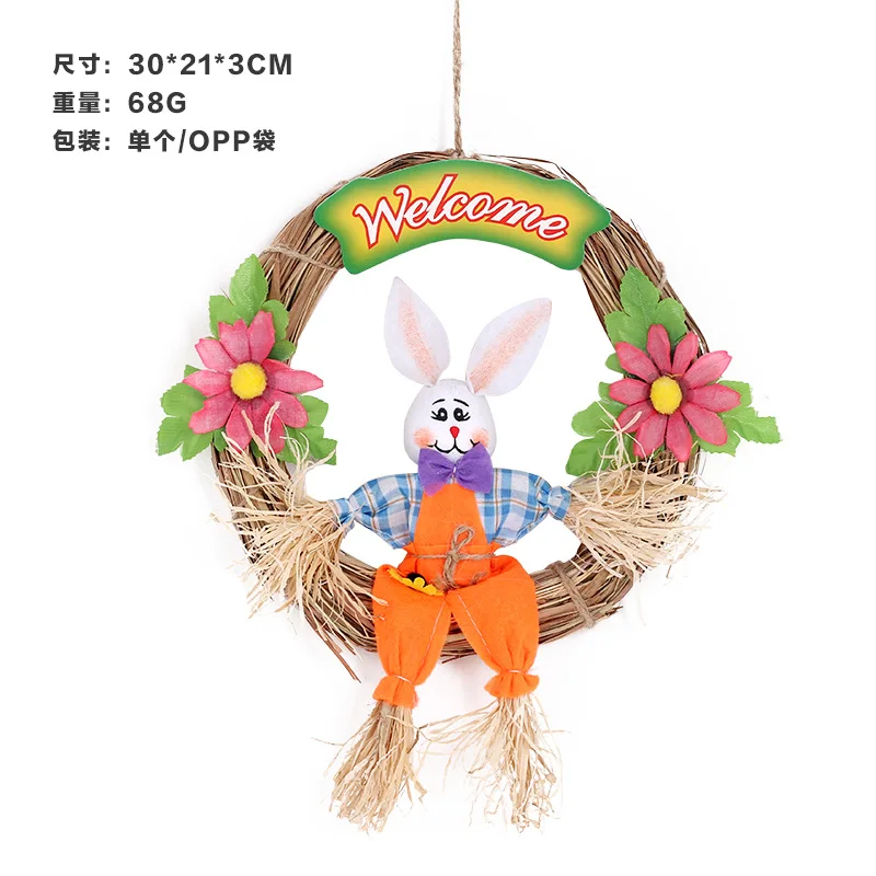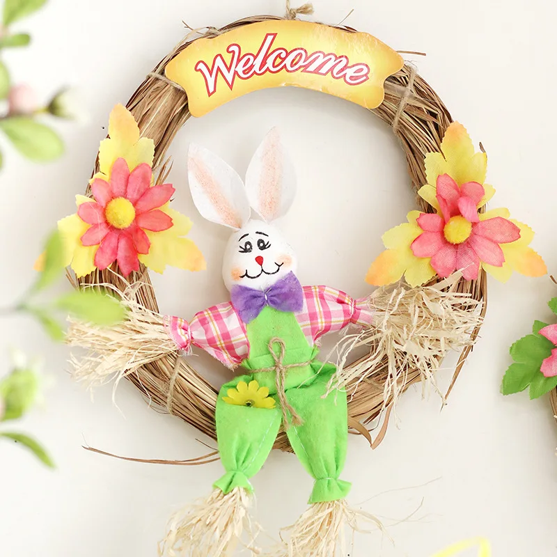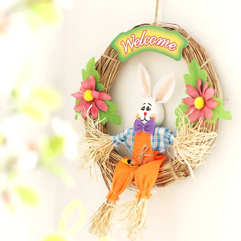 NEW Easter Decorations Spring Pastoral Straw Rabbit Garland Home Door Wall Pendant