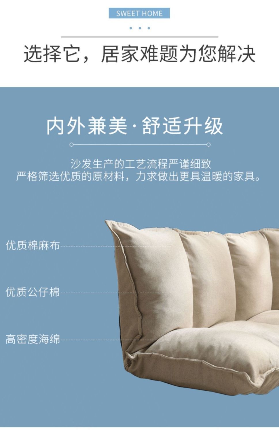 160cm light blue sofa [send two pillows]]
