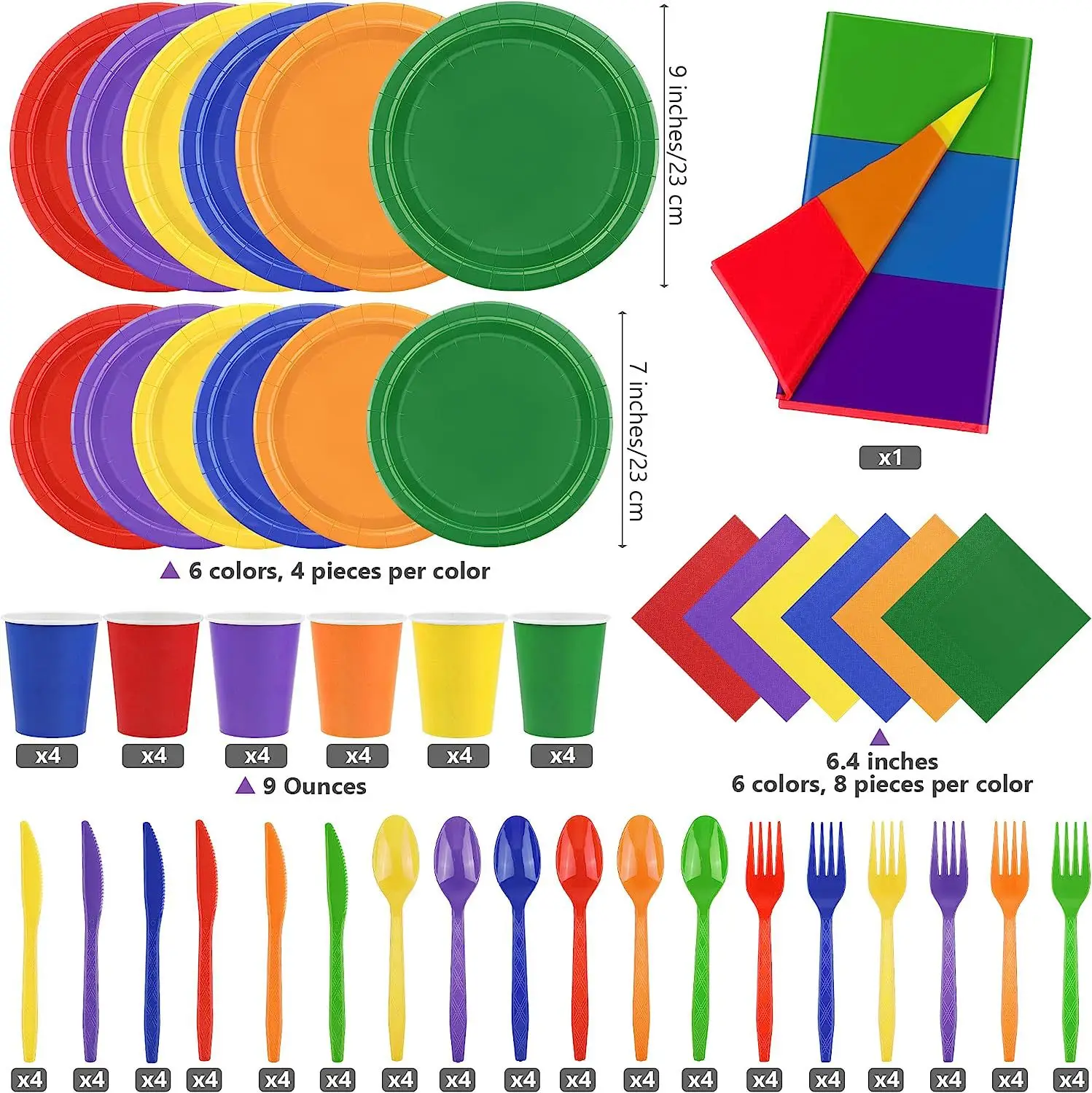 2024 custom colorful design party picnic disposable wedding birthday party tableware set