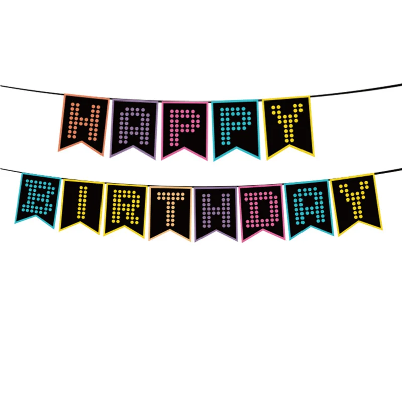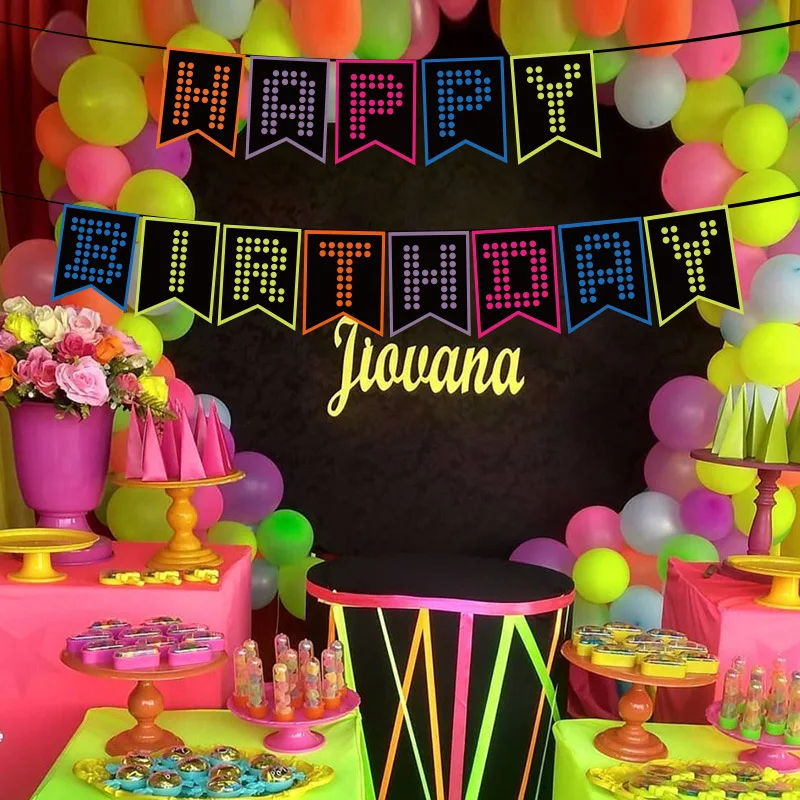 Birthday Letter Fluorescent Bunting Pull Flag Birthday Party Banner Party Floral Fluorescent Party Decoration