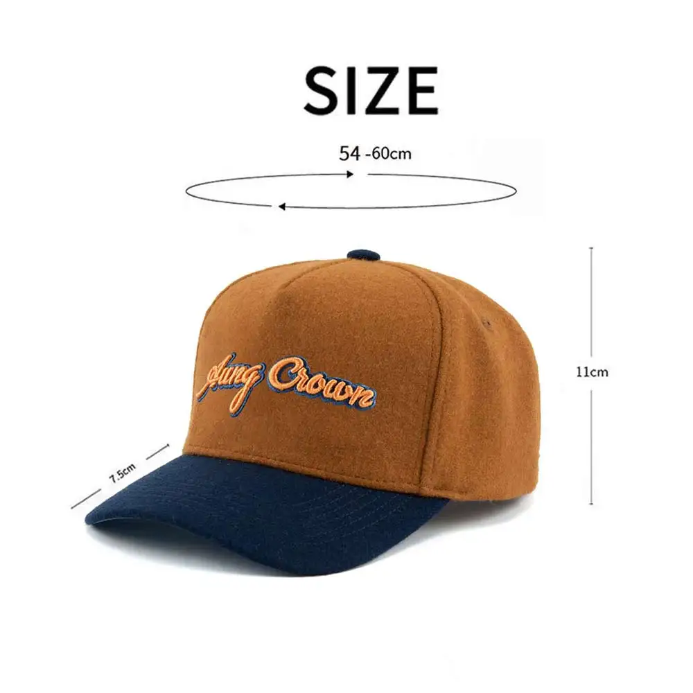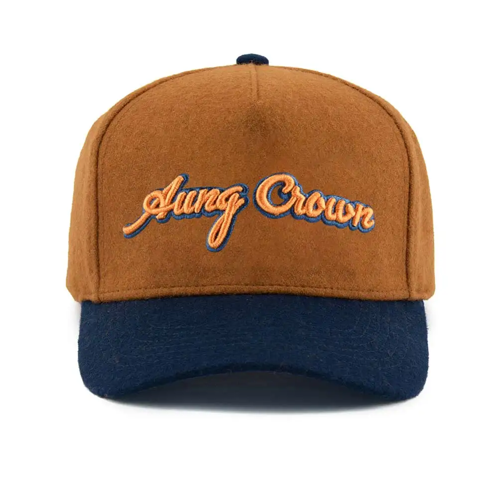 1.Product Name | Customized Melton wool 5 Panel A Frame Embroidery New Snap back customized logo blank baseball cap in Two-tone caps hats | ||