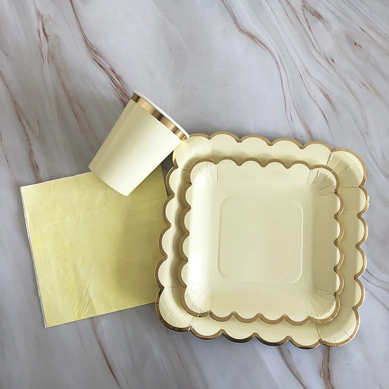 Disposable Yellow Picnic Plate Cake Plate Children's Birthday Party Large Paper Plate Dessert Table Decoration Set