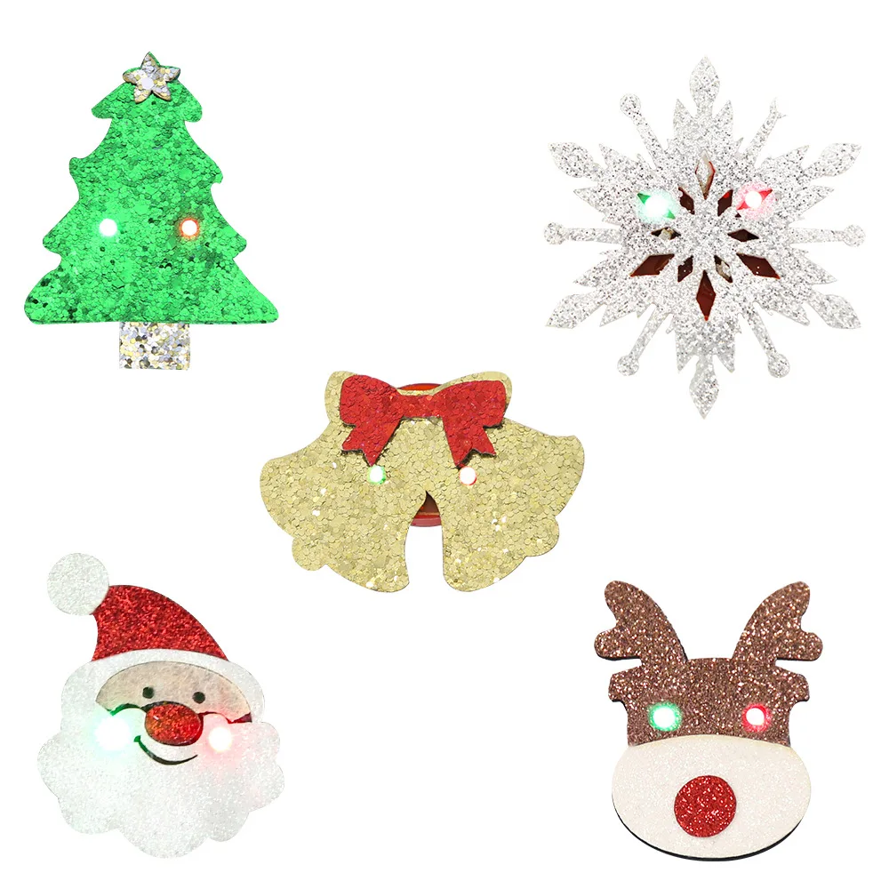 Glowing Christmas Decorations Light up Brooch cartoon Christmas Tree badge Elk Christmas children adult dress-up props