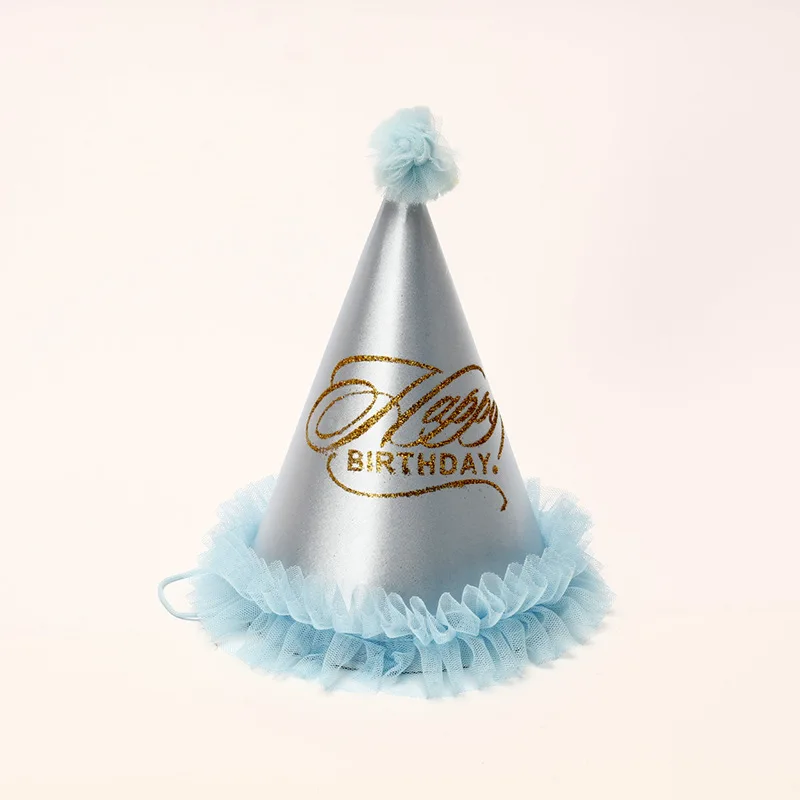Paper Hat Manufacturer 20cm Pointy Hat Party Dress Up Pure Lace Gold Powder Yarn Ball Compound Birthday Hat