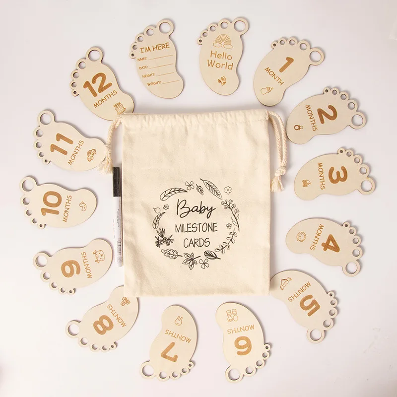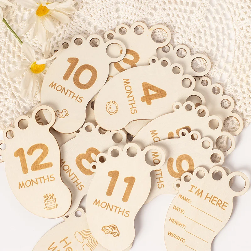 Baby's First Birthday Souvenir Baby Milestone Chuck Baby Month Card Wooden Laser Engraving Photography Props