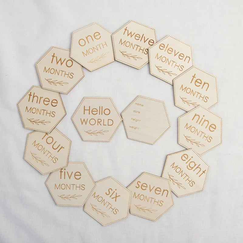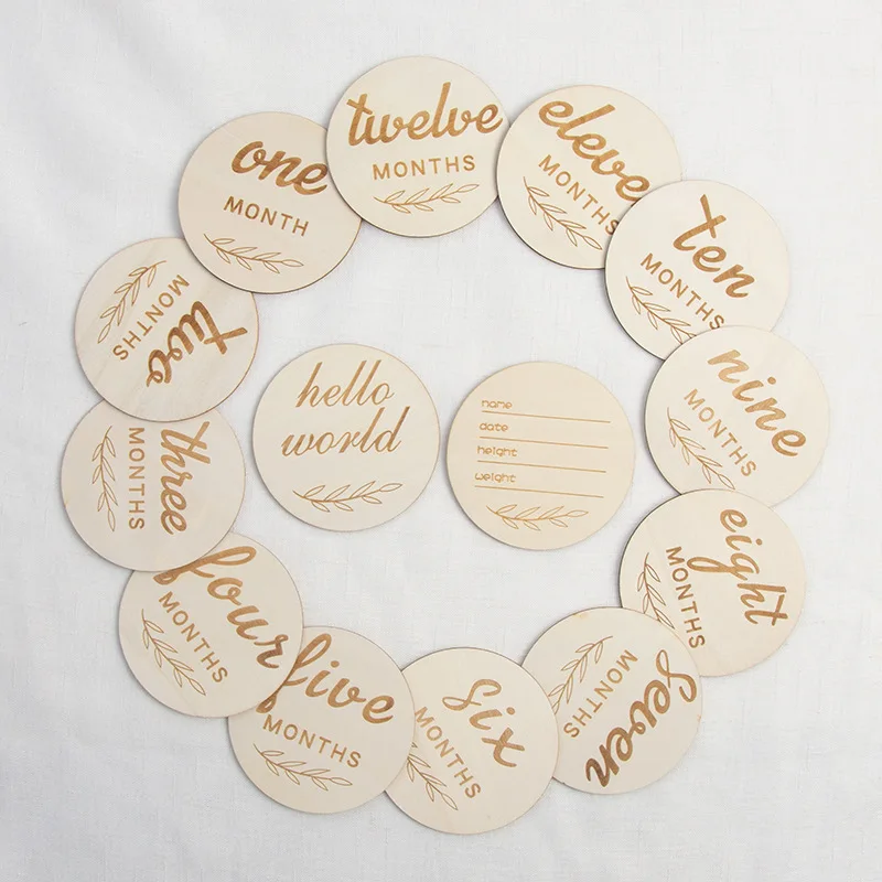 Wooden Baby Month Cards DIY Wooden Baby Commemorative Cards Kids Milestone Cards Newborn Photos