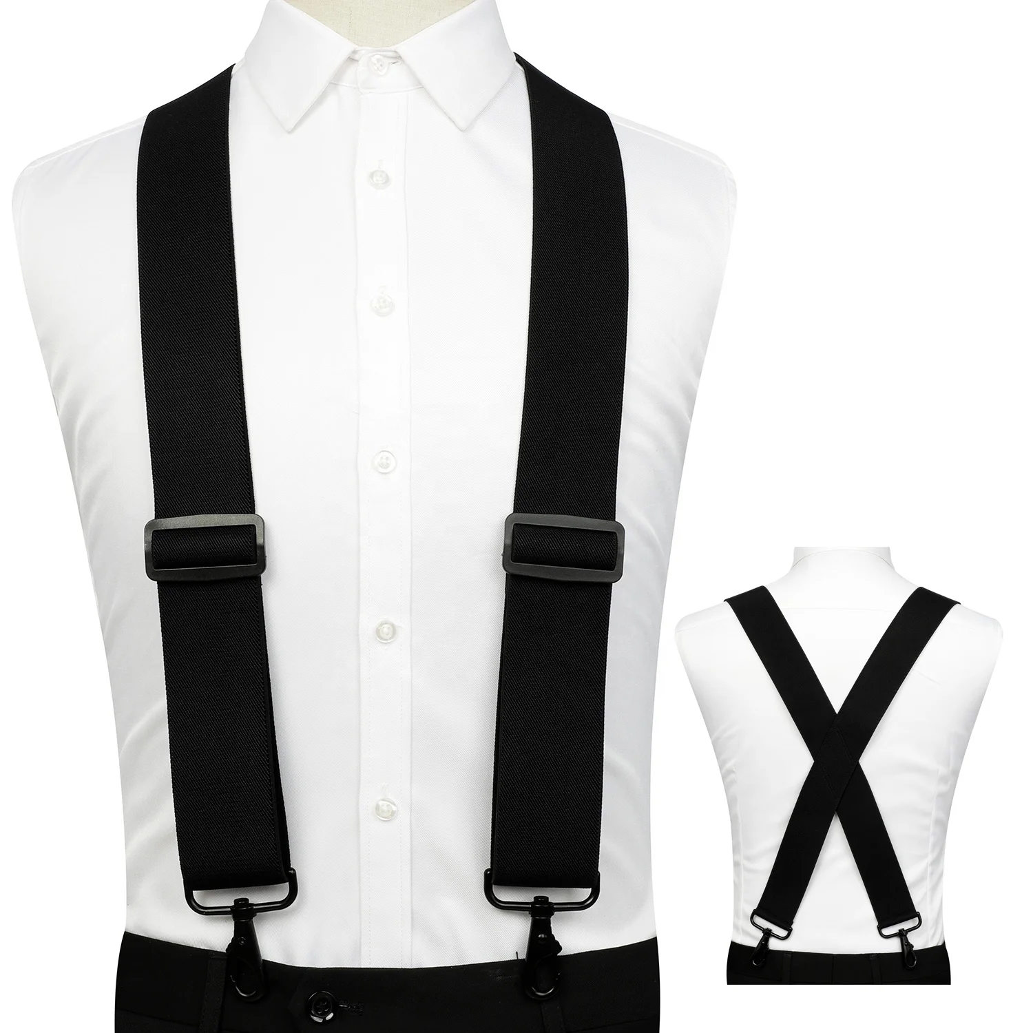 China Wholesale Fancy Black Color PU Leather Fashion Design Suspenders with 4 Metal Clips Wedding Usage