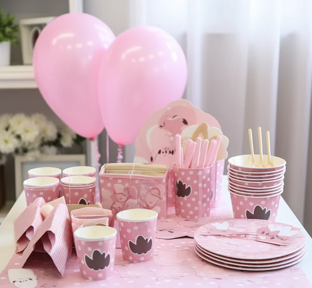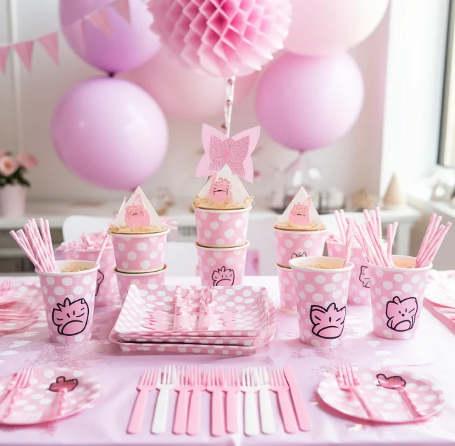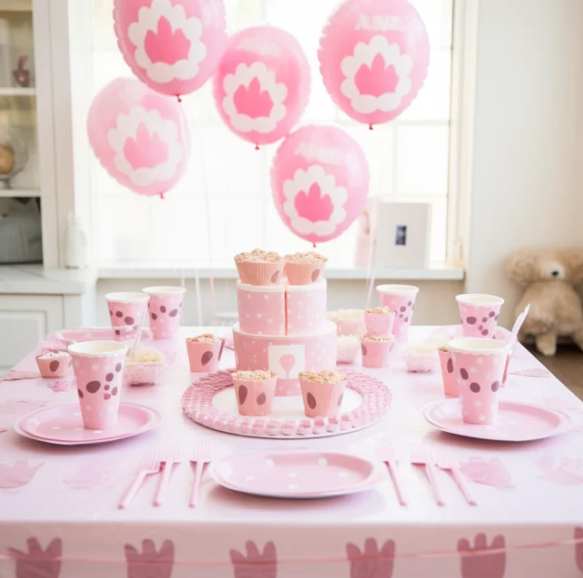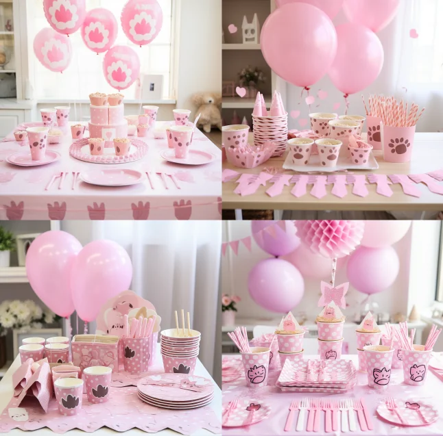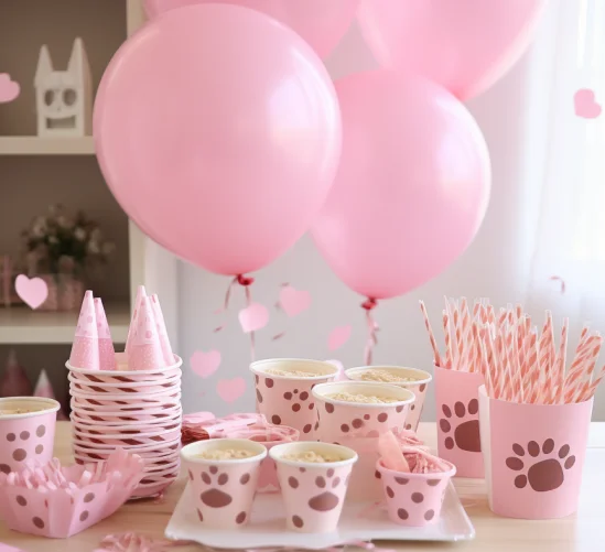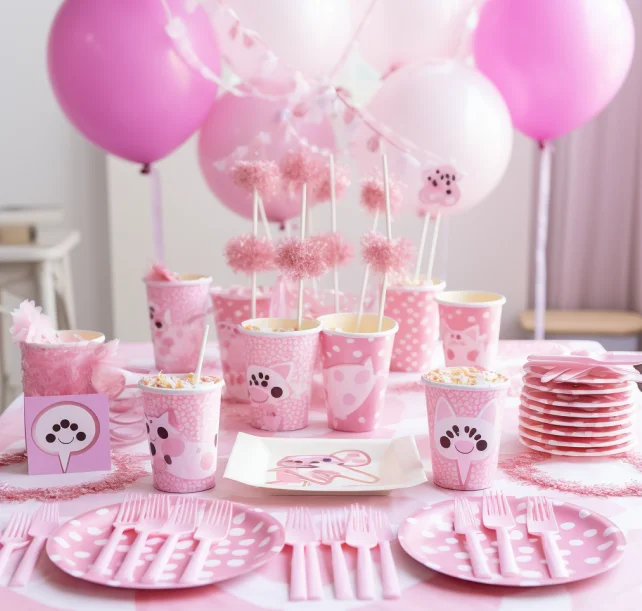 Custom Design Printing Pet Theme Pink Dog Paw Party Decoration Set Pull Flag Paper Cup Plate Napkin Decoration Supplies