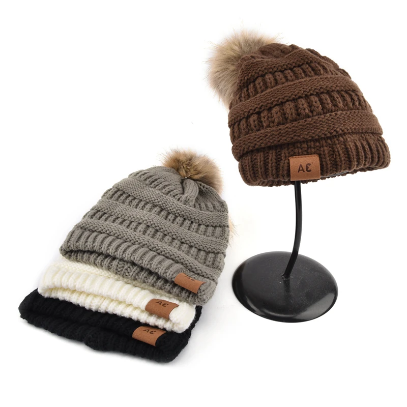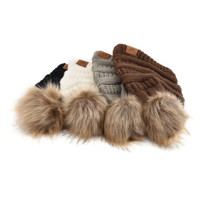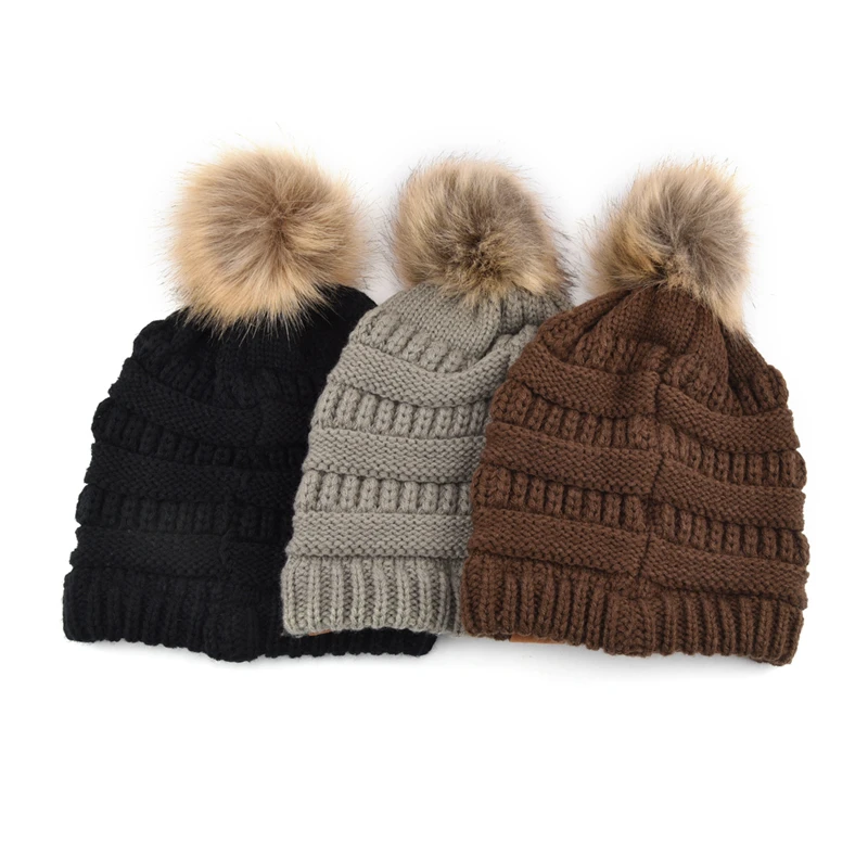 1.Product Name | Women Trendy Hats Winter Knitted Fur Poms Beanie Label Cable Slouchy Skull Caps Fashion Leisure Beanie | ||