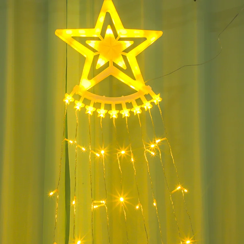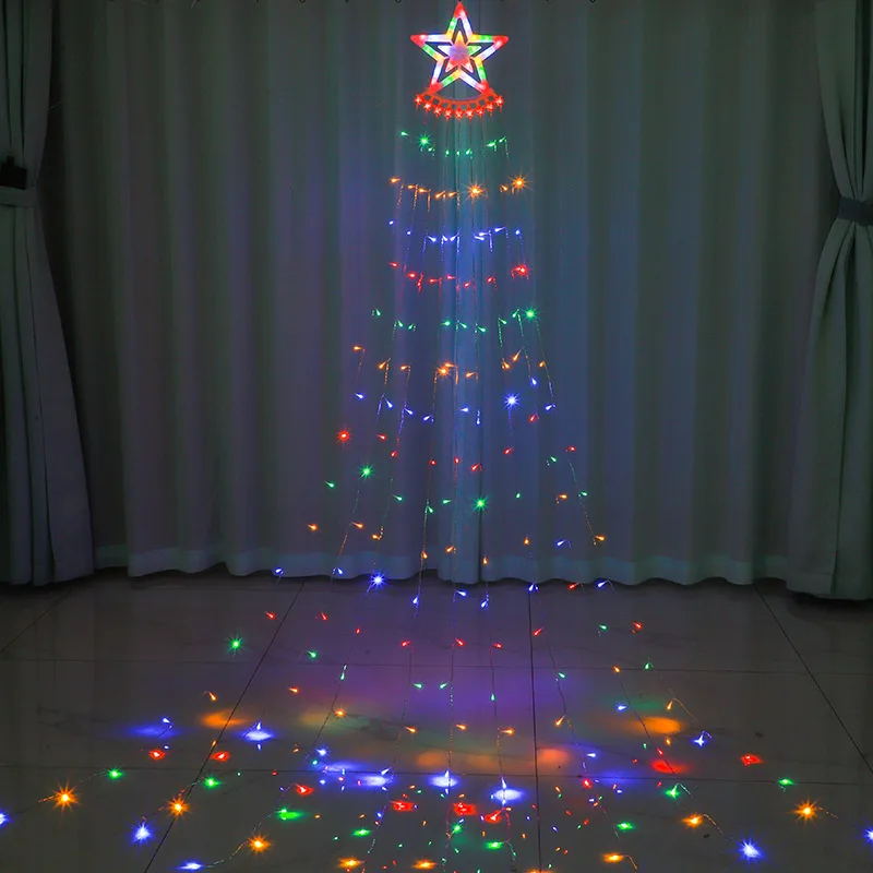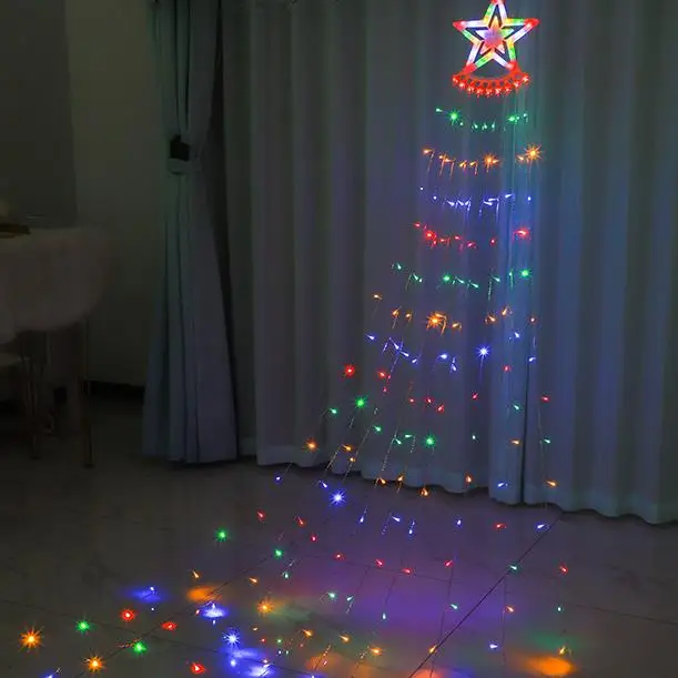 Christmas Tree Decoration Lights Running Water Tail lLanterns Courtyard Outdoor Holiday Decorations Five-pointed Stars Lights