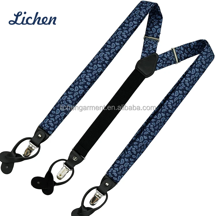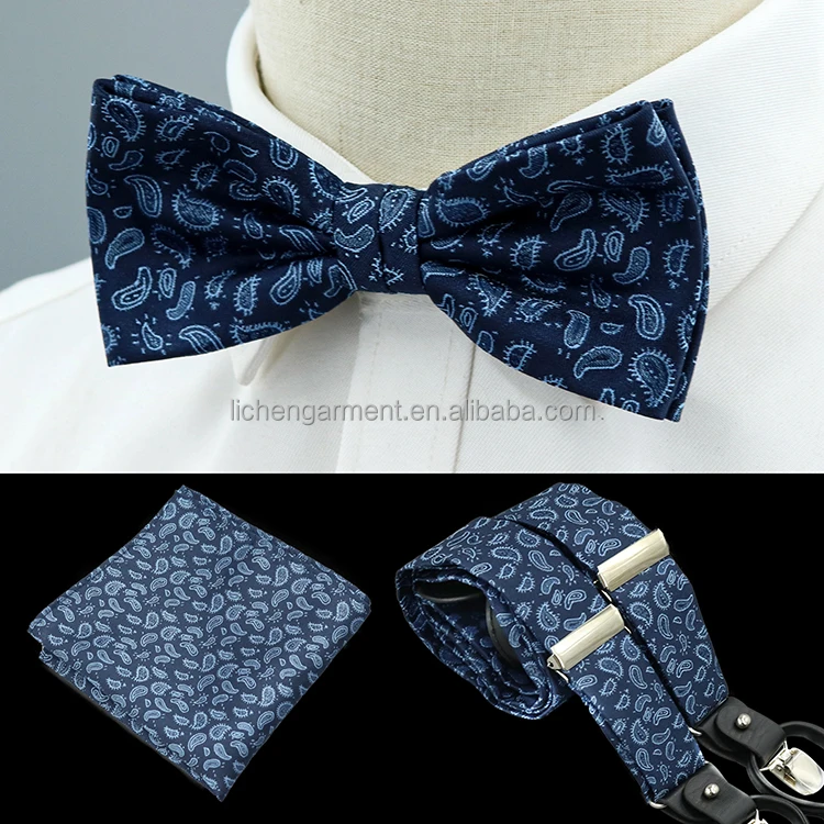 Blue Solid Adjustable Suspender Bow Tie Hankie Sets For Men Polyester Cravat Gift
