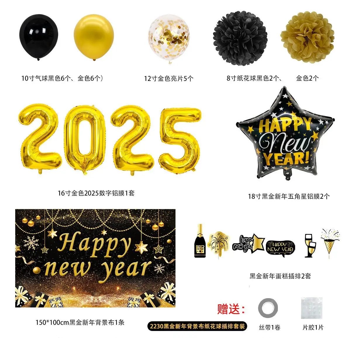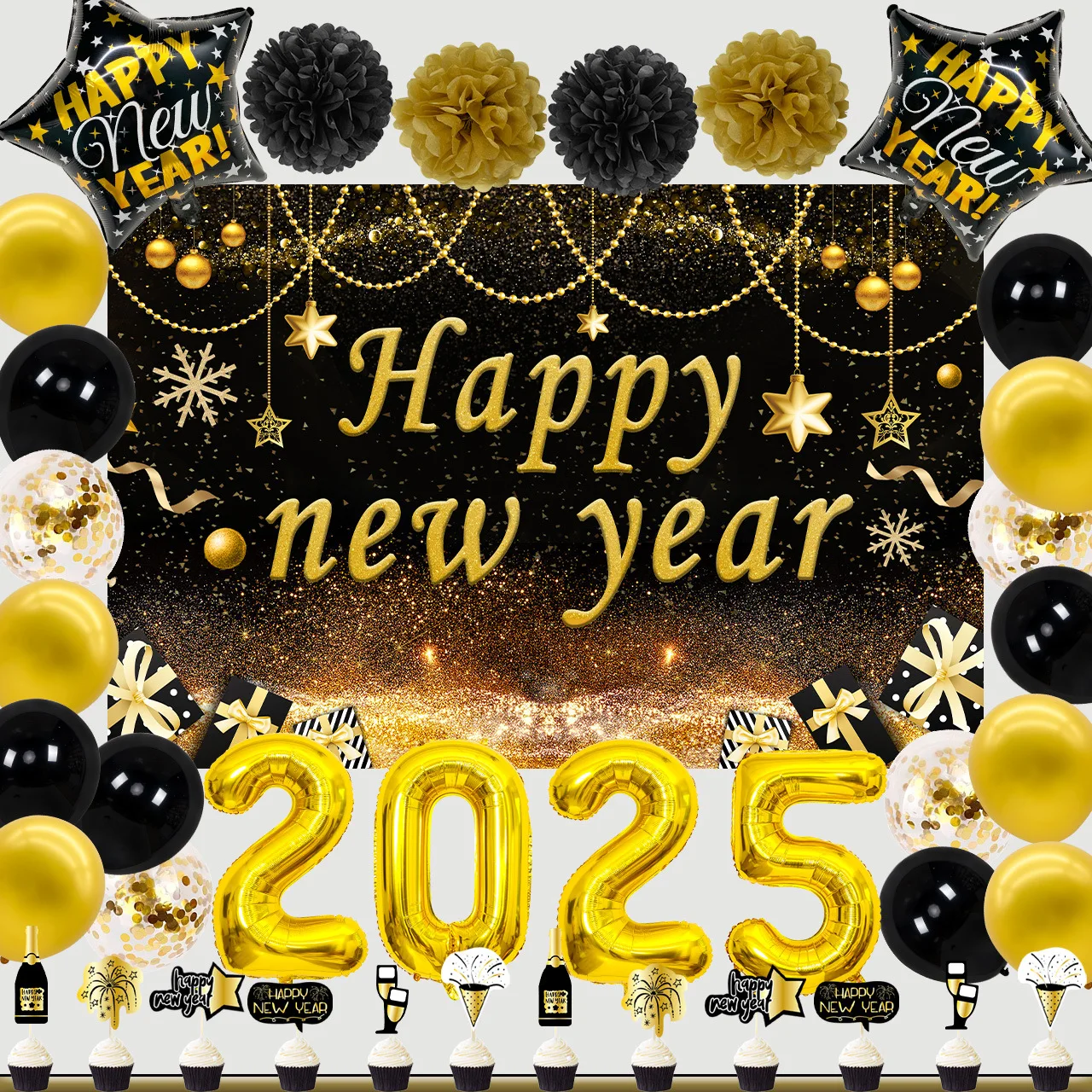 New Year Balloon Cross Border Balloon Set 2025 New Year Decoration Decoration Latex Aluminum Film Combination Balloon Wholesale