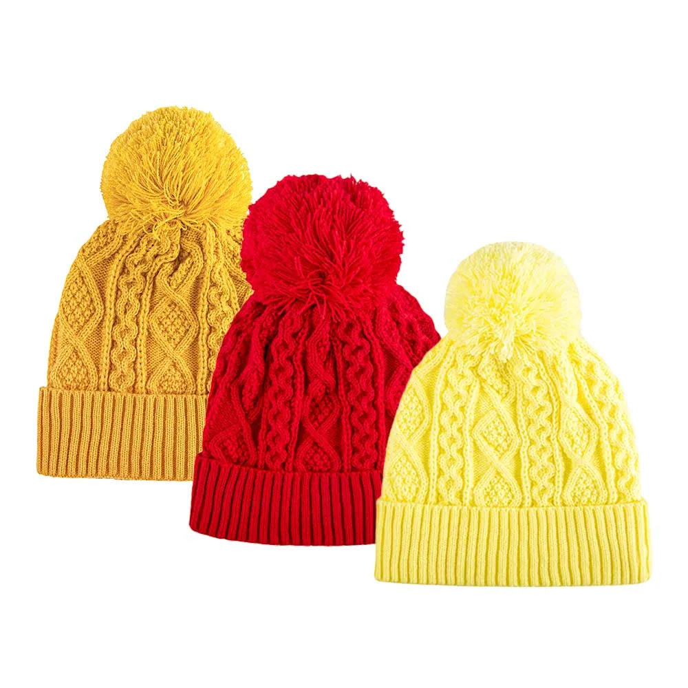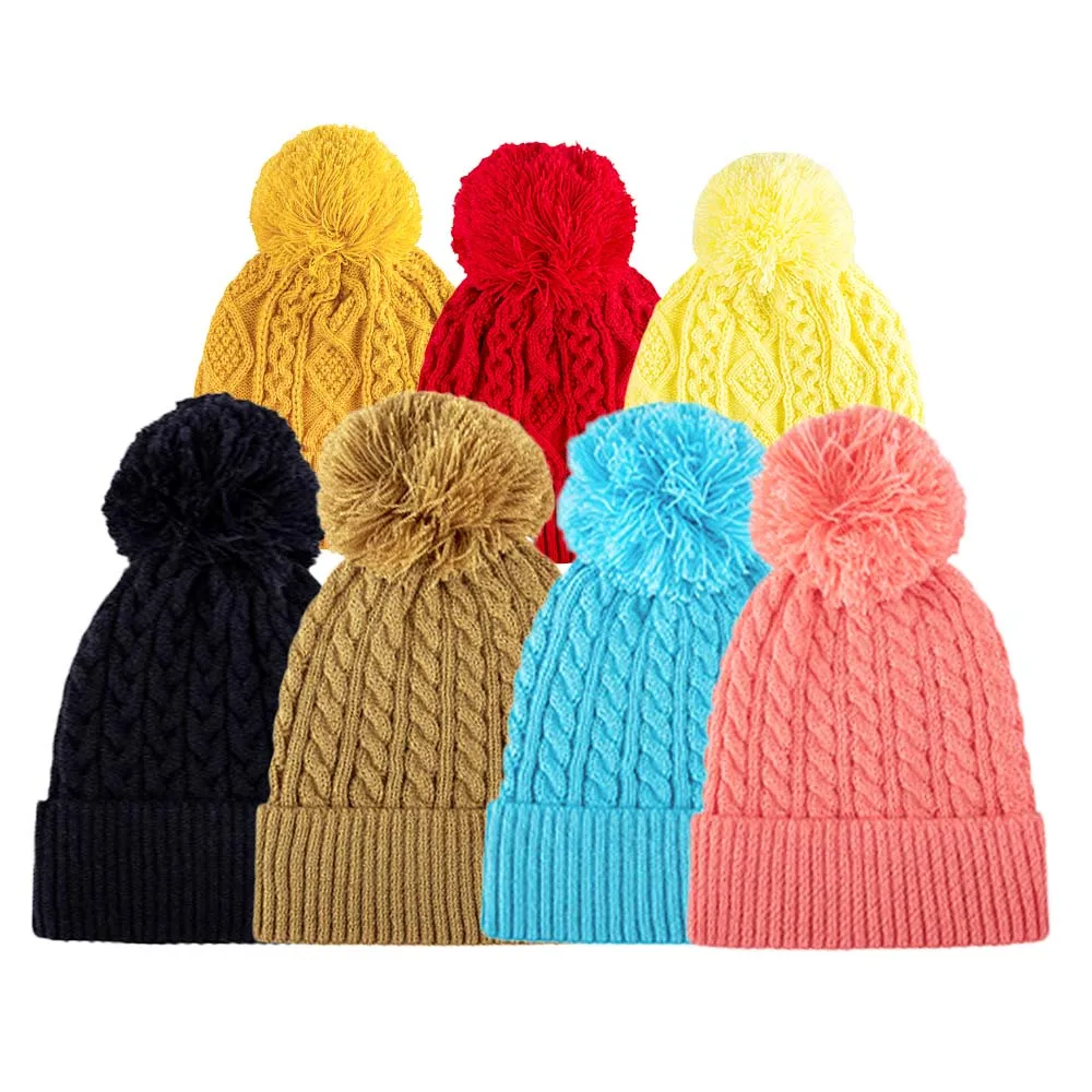 Custom Cuff Warm Winter Cap Multicolor Beanie Thick Chunky Cable Acrylic Knitted Bobble Hats