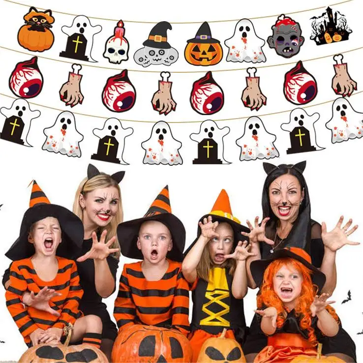 Halloween flag pull theme holiday party decoration supplies pendant props paper special-shaped flag pull
