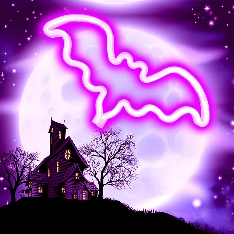 Halloween Bat Neon LED Decorative Lights Styling Holiday Party Interior Decoration Mood Lights