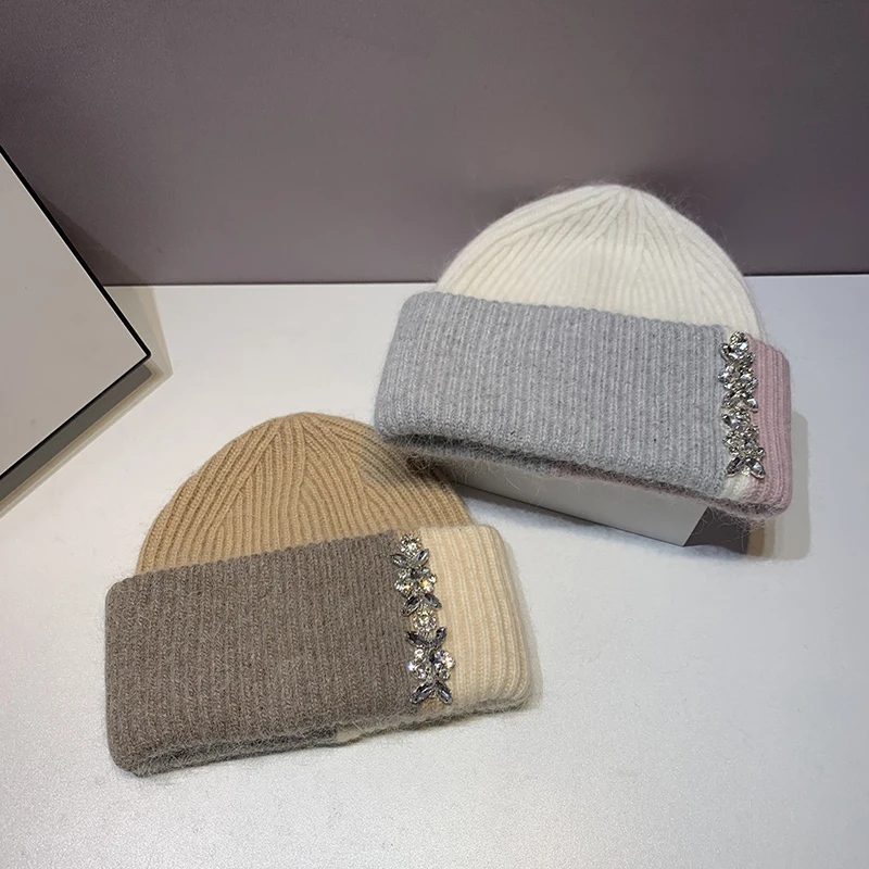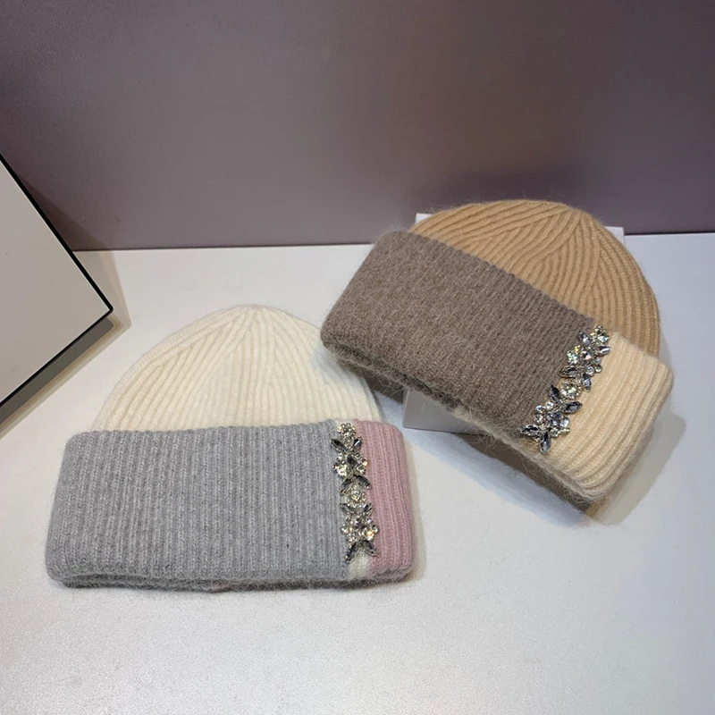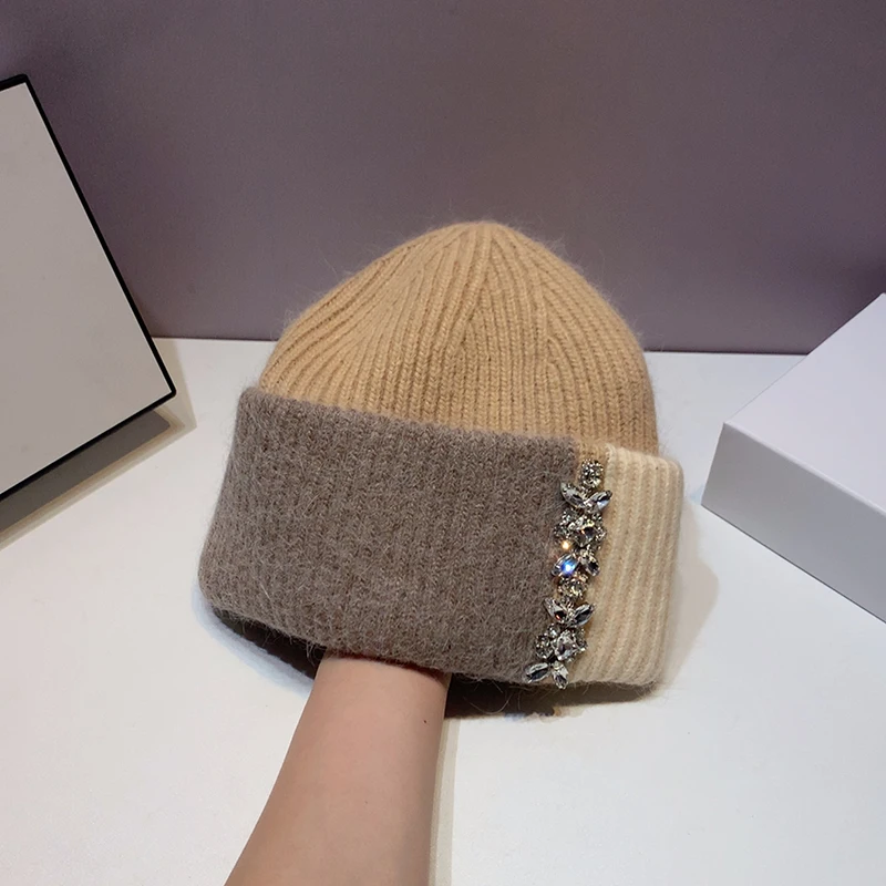 1.Product Name | Female Male Color Block Custom Bling Rhinestone Beanies Knitted Hat Autumn Winter Warm Diamond Cap Beanie | ||