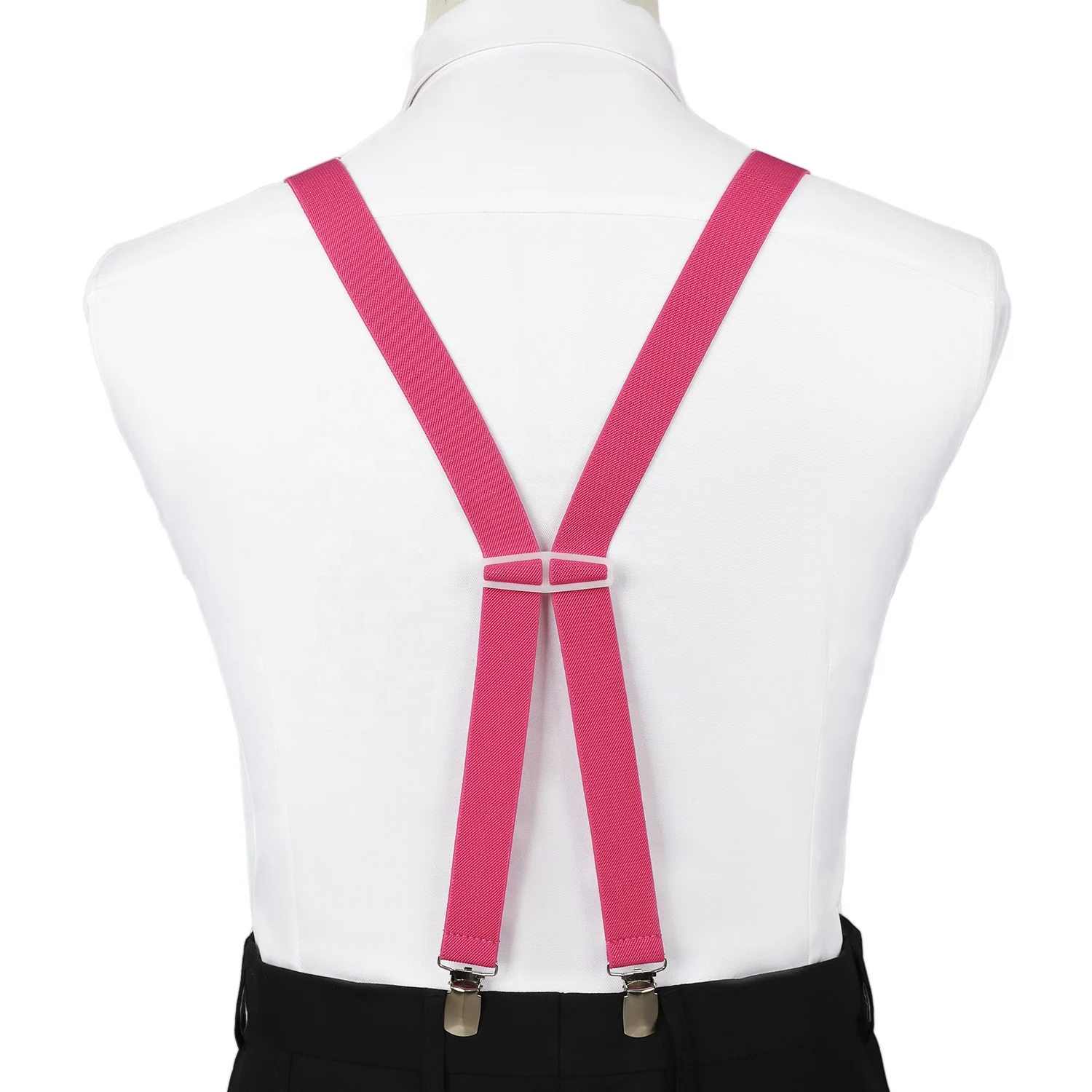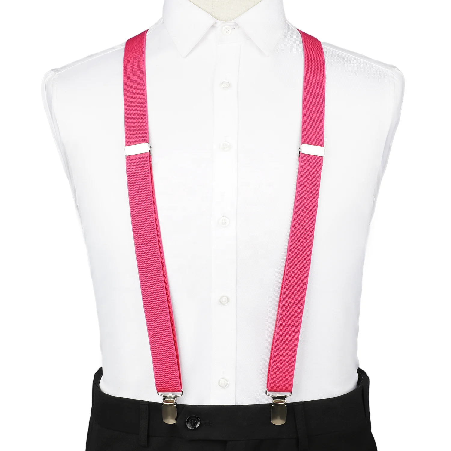 Mens Groomsmen Shirt Braces Elastic Grass Dark Pink Adjustable Clips Suspender for Party