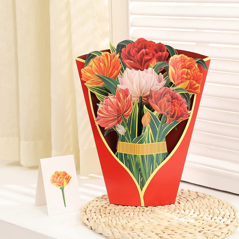 Creative 3d Greeting Card Mother's Day Paper Hand Holding Flowers Thank You Blessing Gift Greeting Card