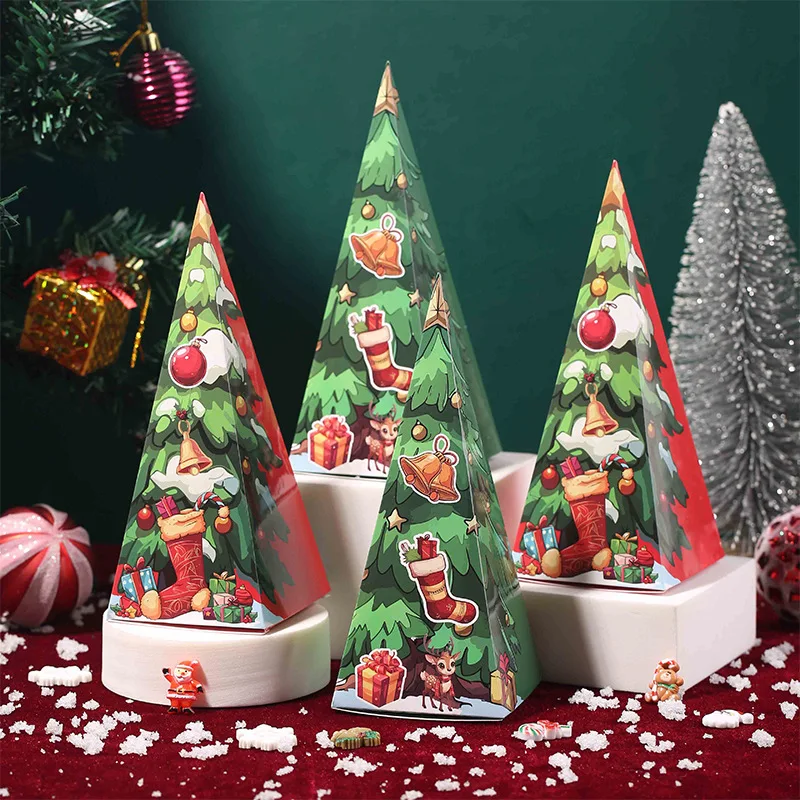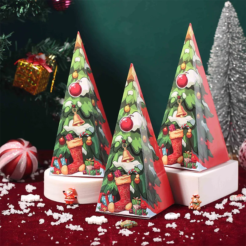 European New Christmas Tree Candy Gift Box Paper Triangle Box Christmas Gift Candy Box