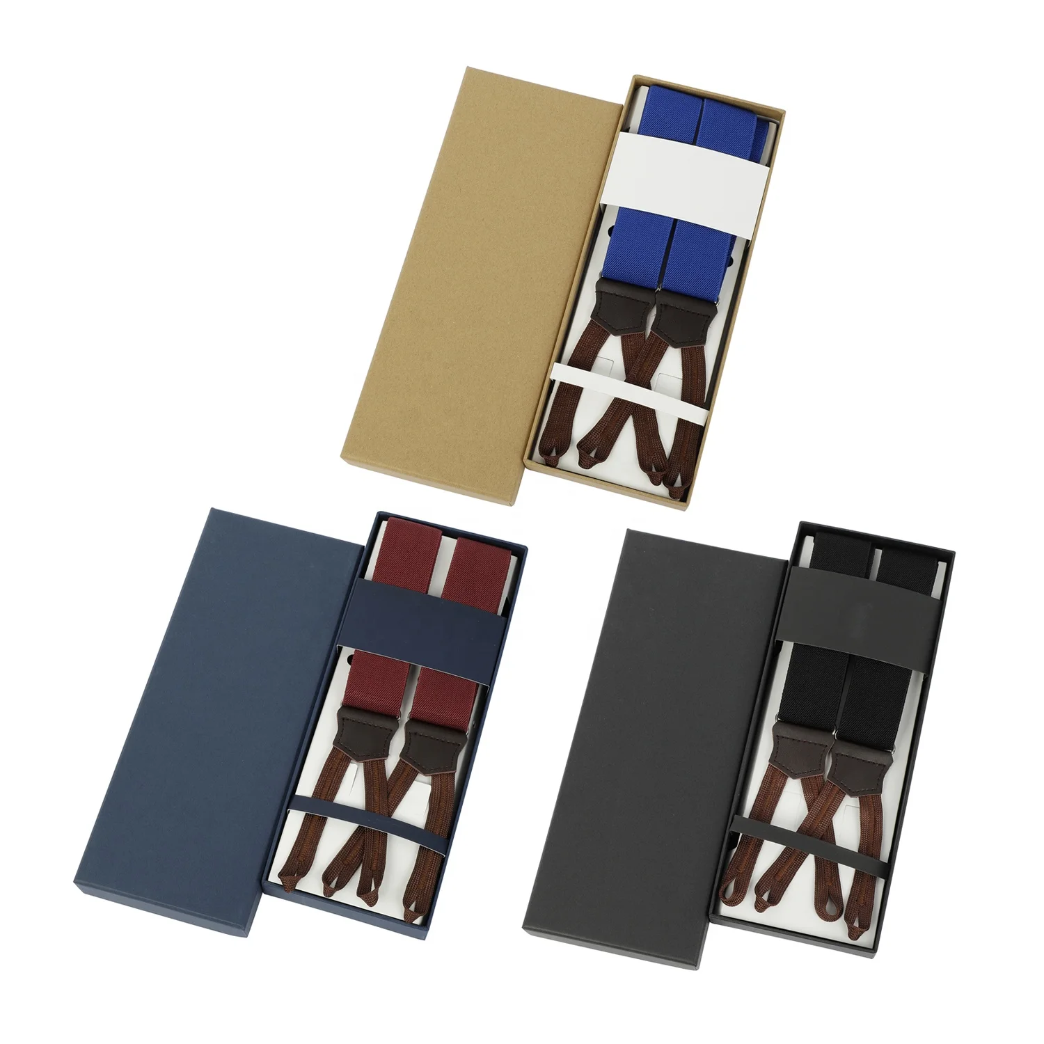 Custom Mens Y Back Heavy Duty Wide Brown Movable No Sew Suspender Buttons