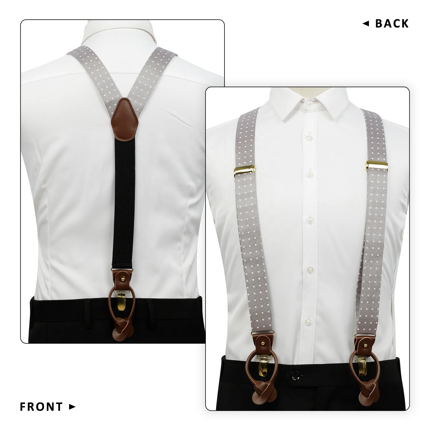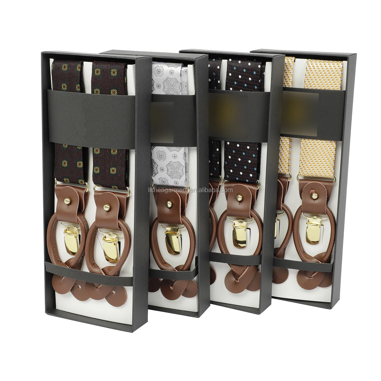 Wholesale Mens Trouser Suspenders 3.5cm Width 3 Clips Y Shape Brown Leather Adjustable Button Braces
