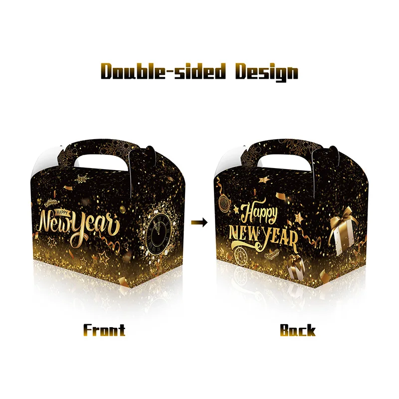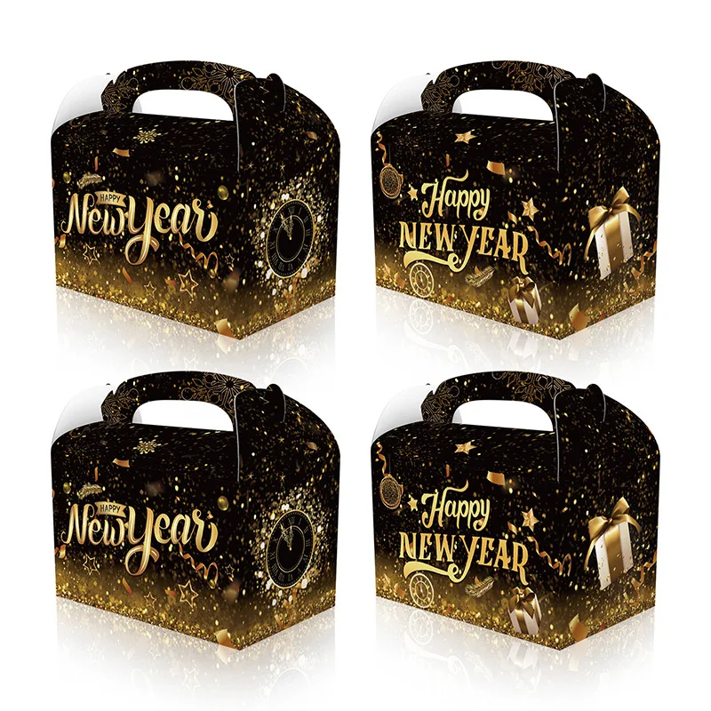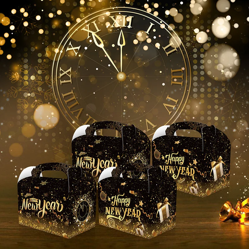 Black Gold New Year Theme Happy New Year Snack Candy Box Gift Box Portable Paper Box For New Year Eve Party Supplies