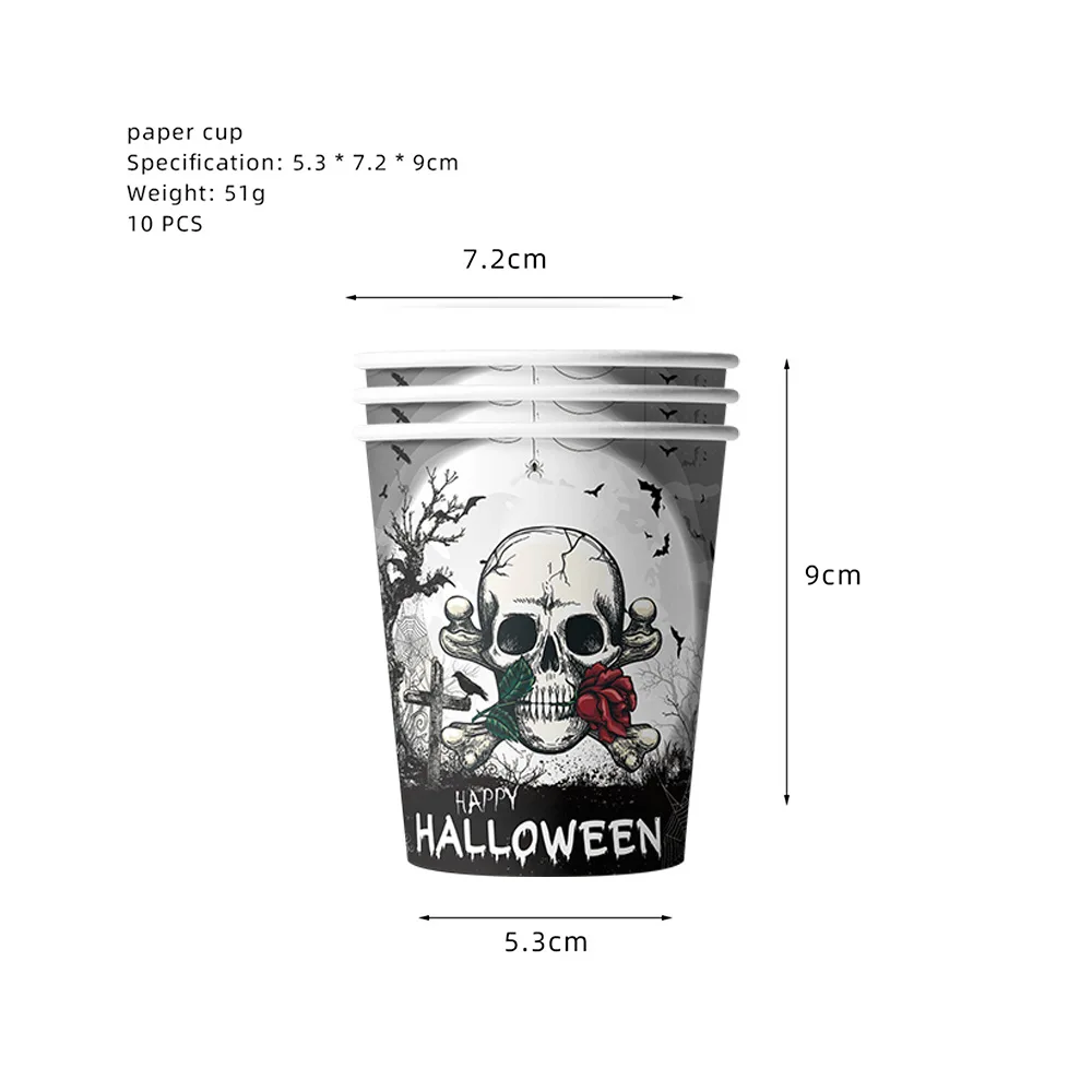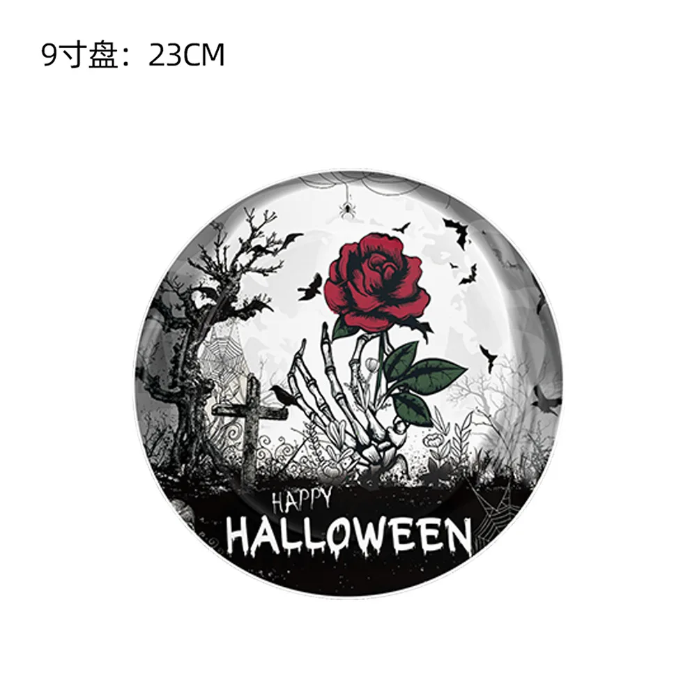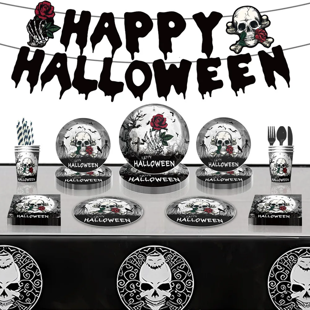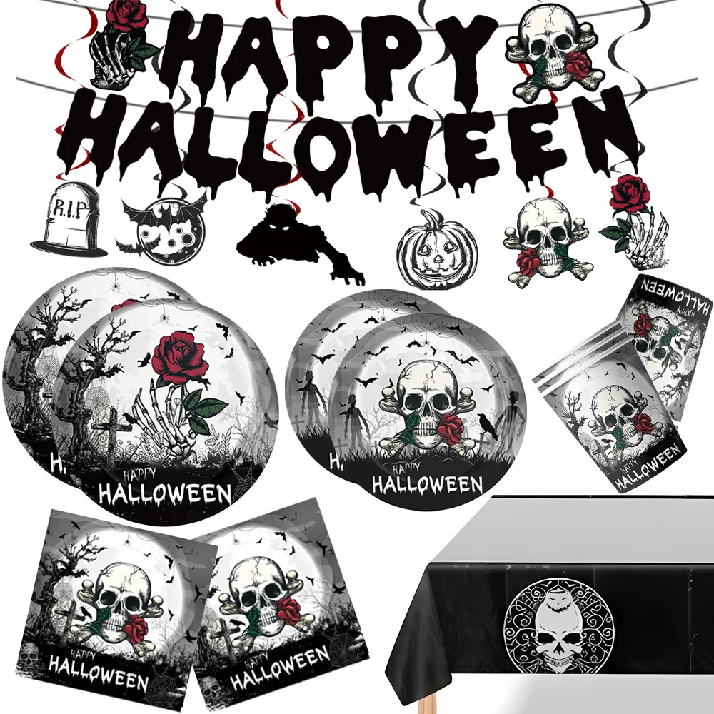 Halloween Paper Plate Kids Party Supplies Gothic Rose Paper Plate Cup Ghost Banner Decoration
