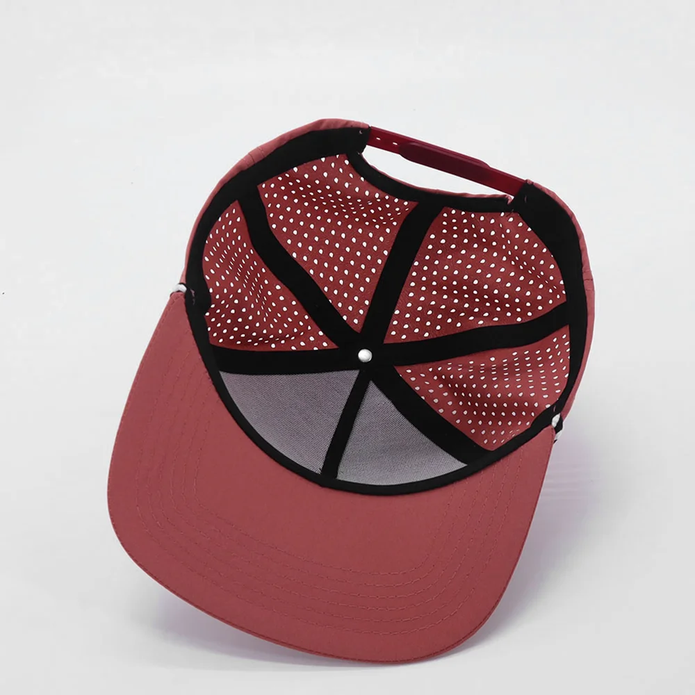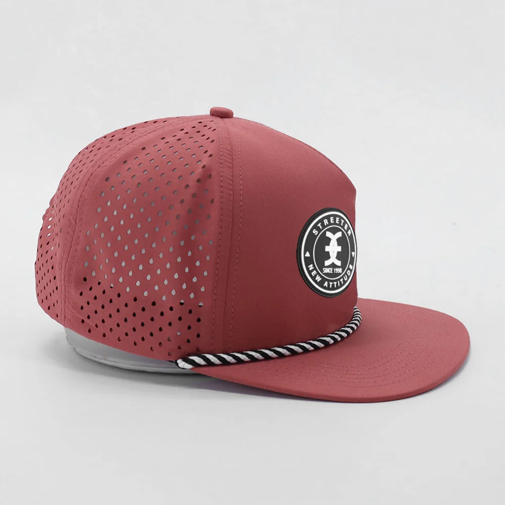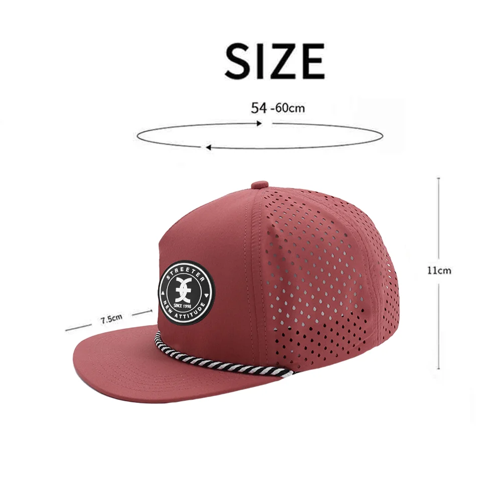 1.Product Name | Embossed PVC Rubber Patch Logo Custom Waterproof 5 Panel Rope Gorras Perforated Hat Laser Cutting Hole Sports Snapback Hat Cap | ||