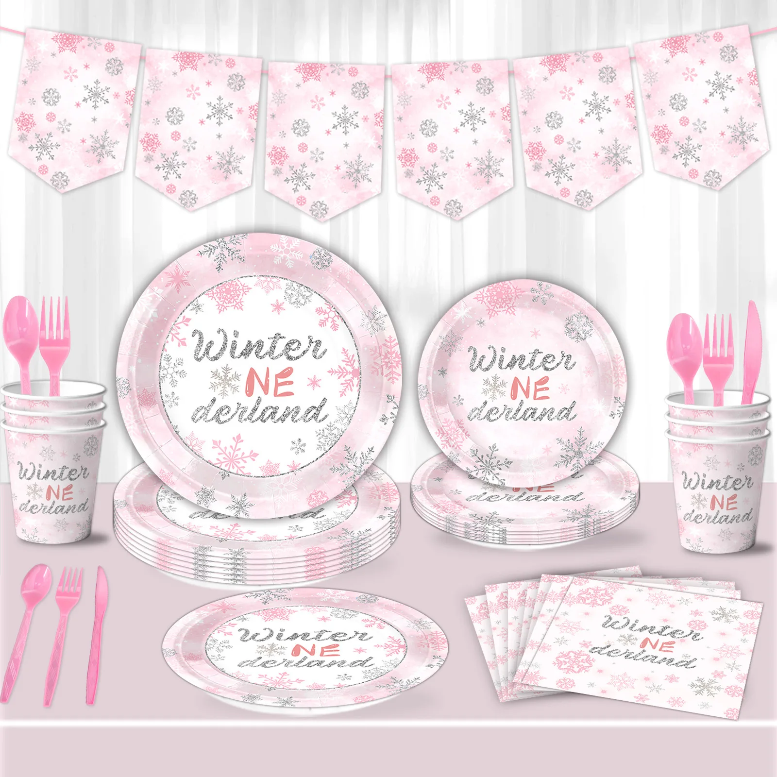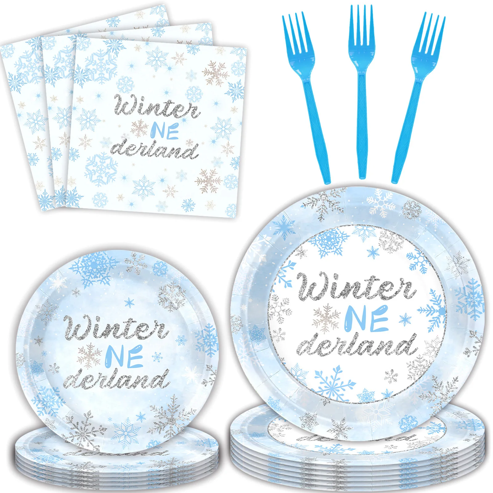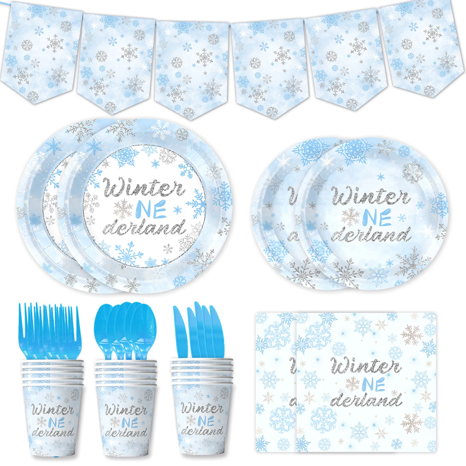 Snowflake Winter themed party supplies cutlery birthday cake decoration paper tableware set