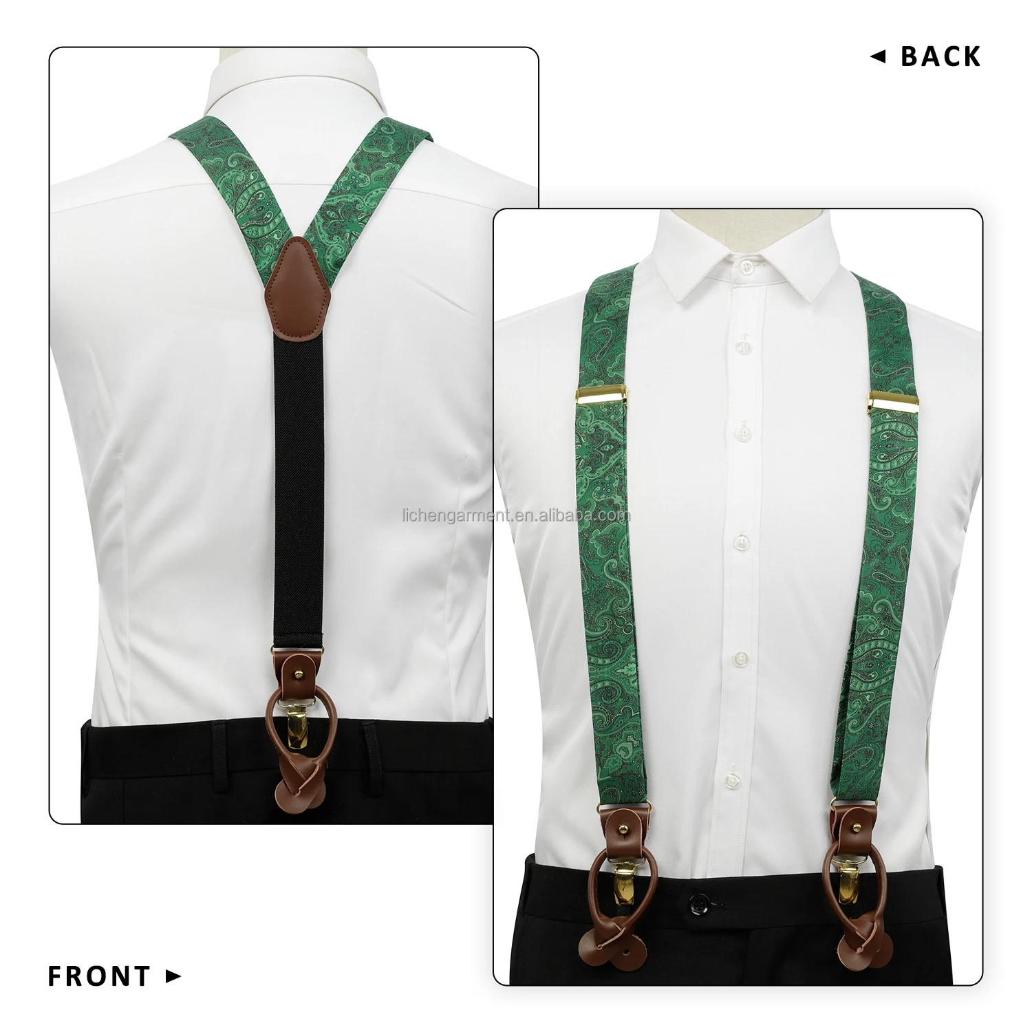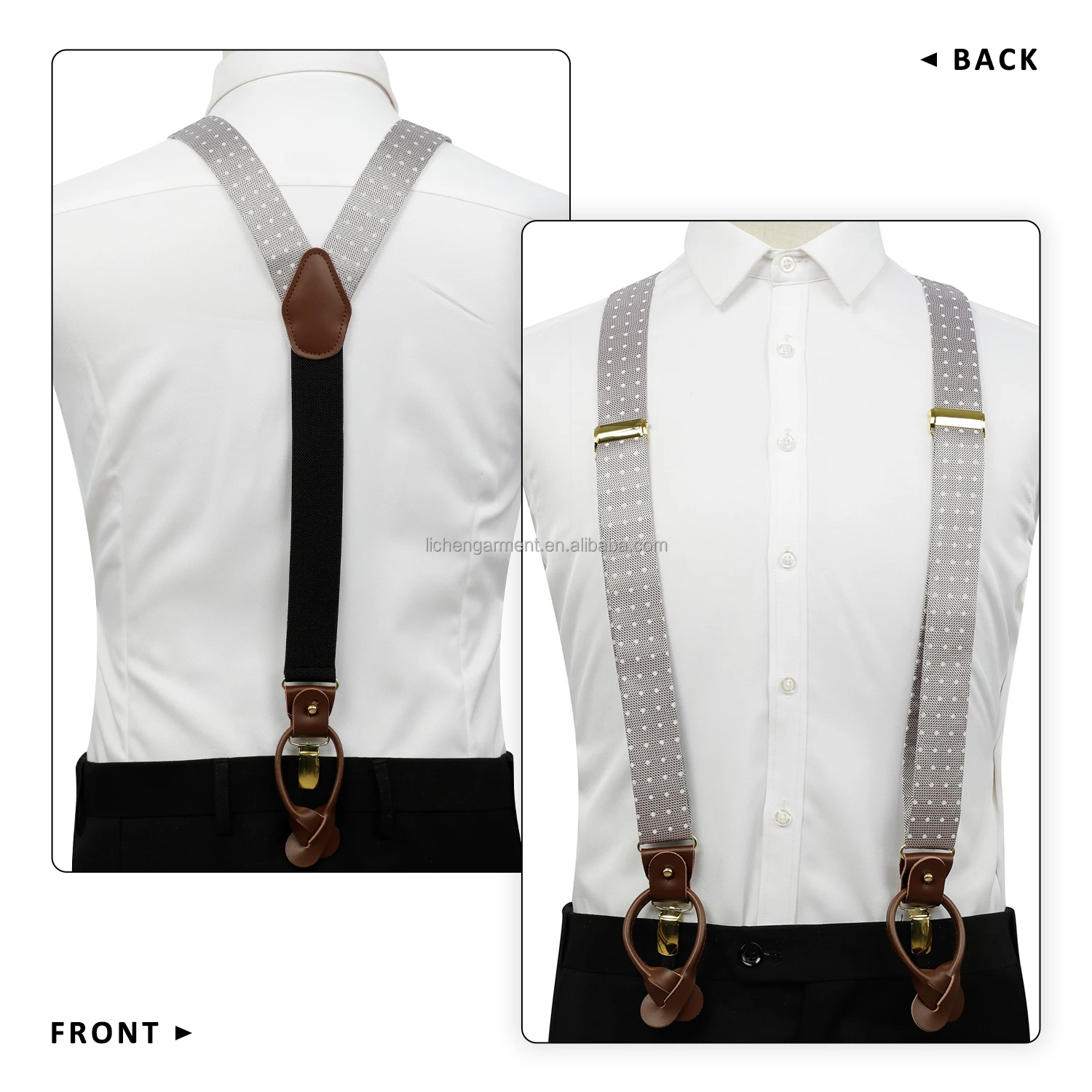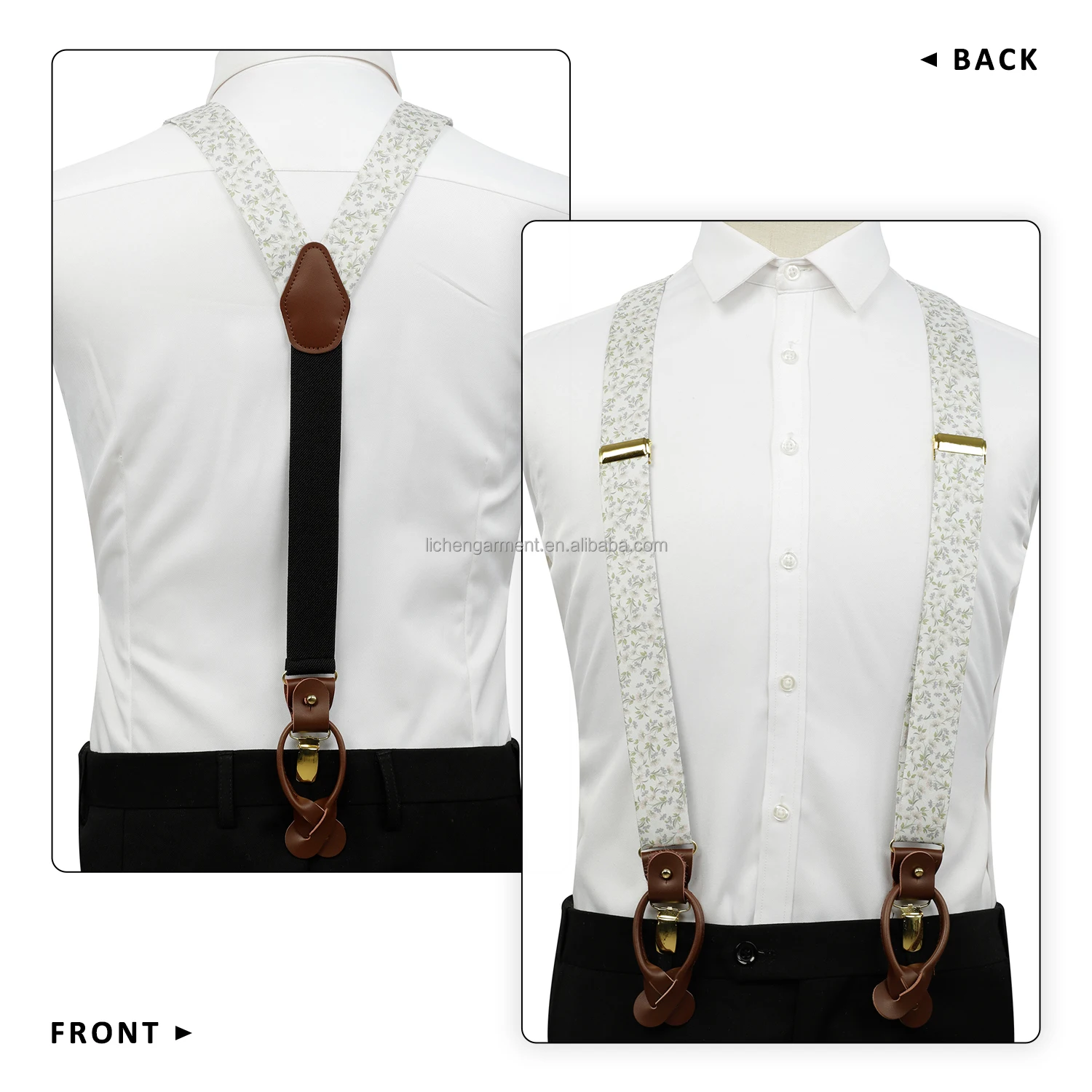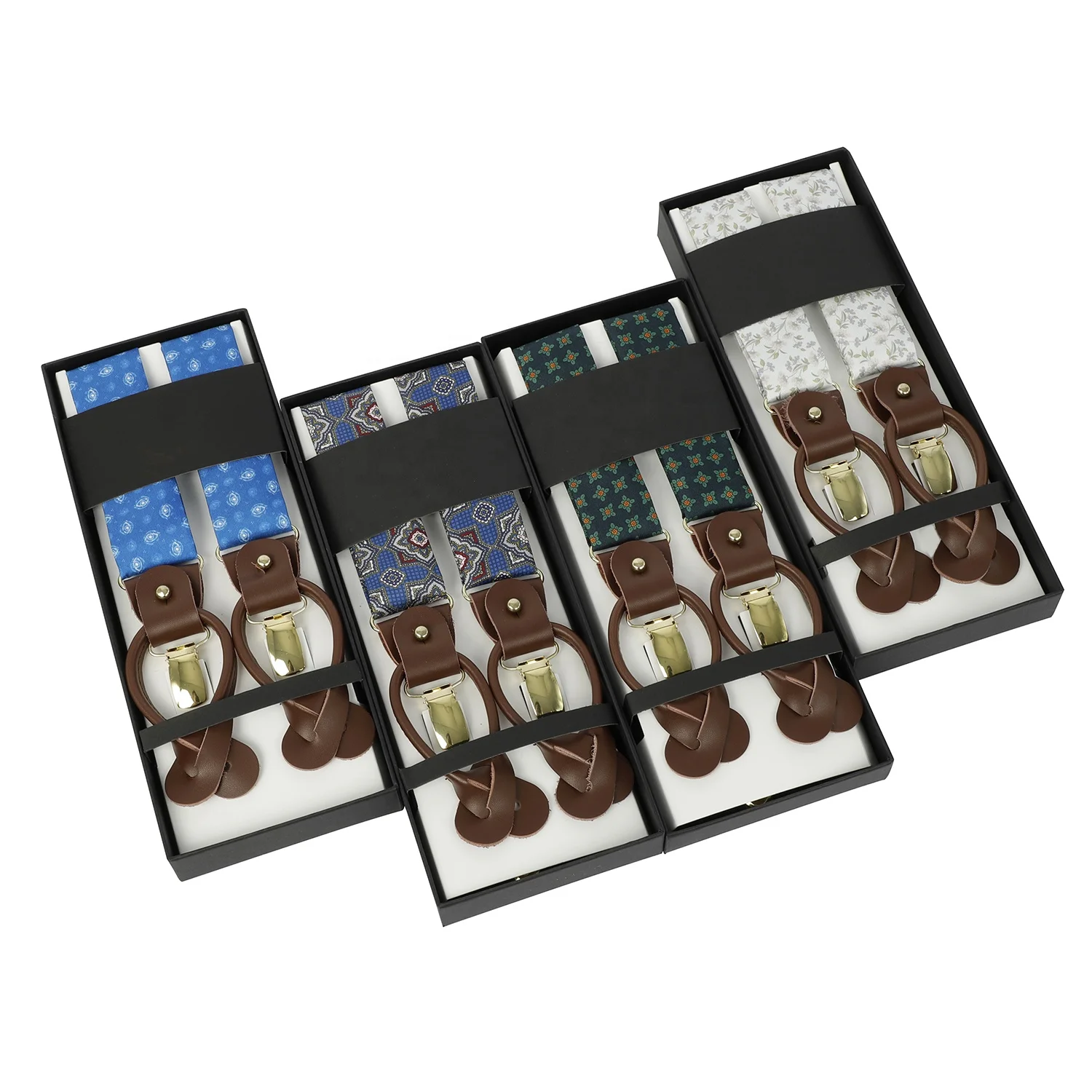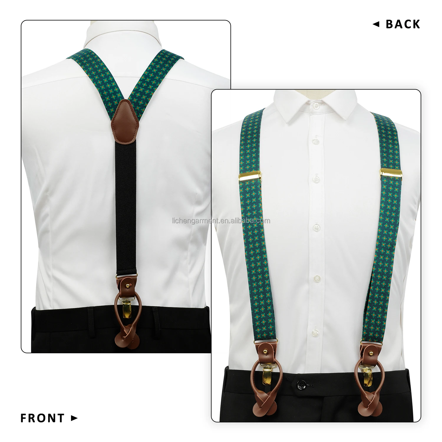 Silk Jacquard Fabric Mens Adjustable Fabric End Suspenders Y-Back Elastic Tuxedo Suspenders with Heavy Duty Leather Buttons End