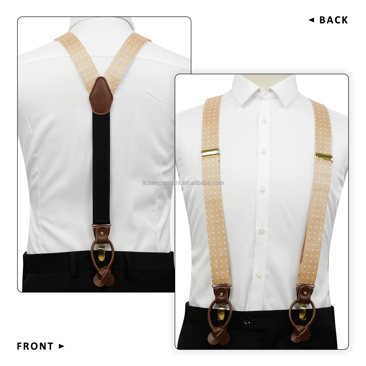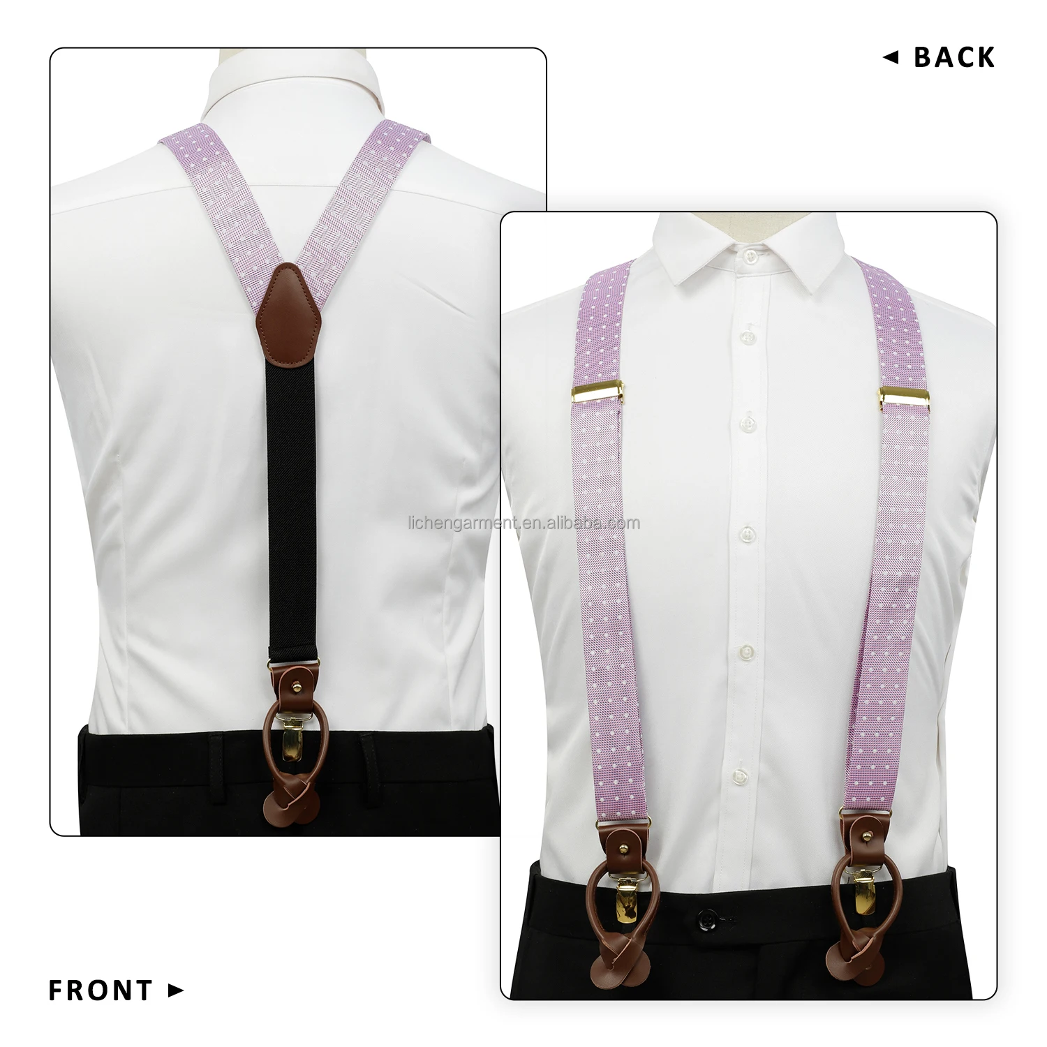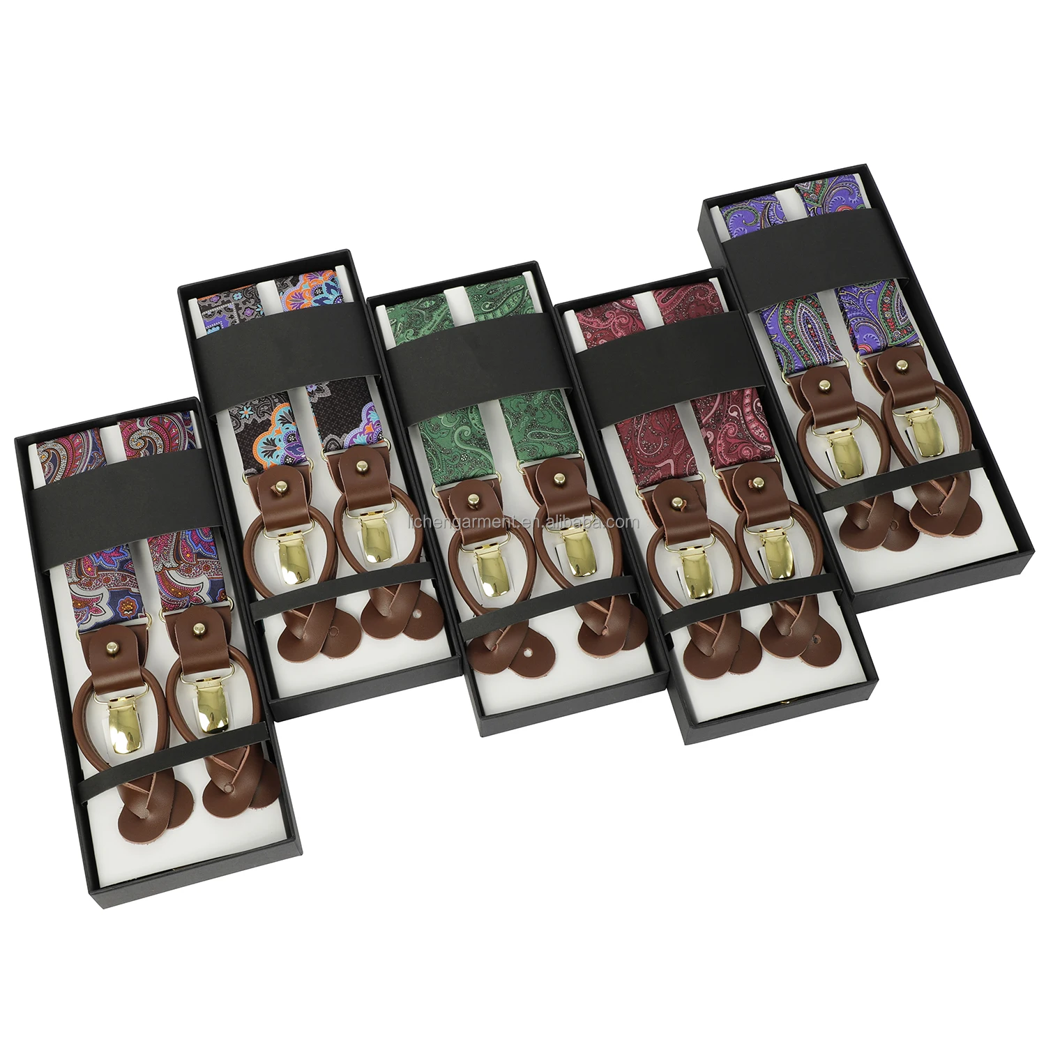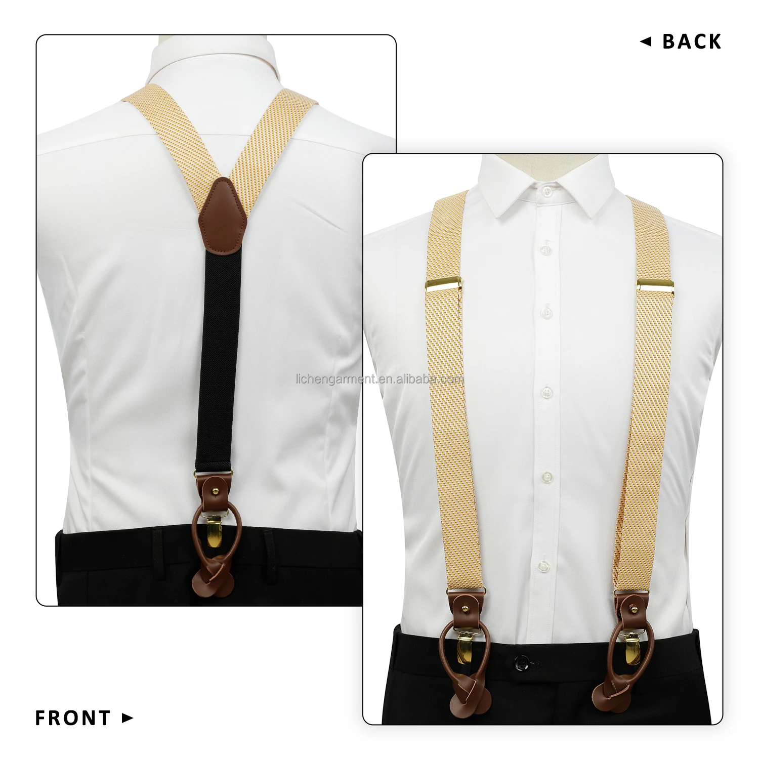 Silk Jacquard Fabric Mens Adjustable Fabric End Suspenders Y-Back Elastic Tuxedo Suspenders with Heavy Duty Leather Buttons End