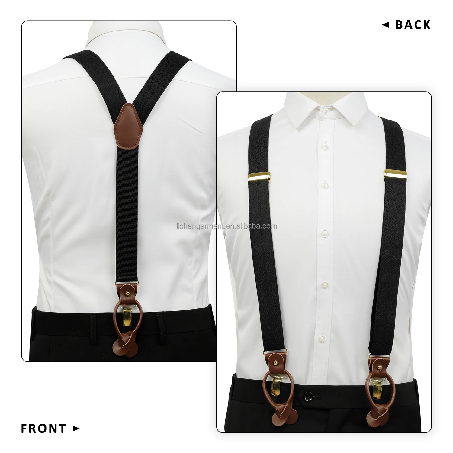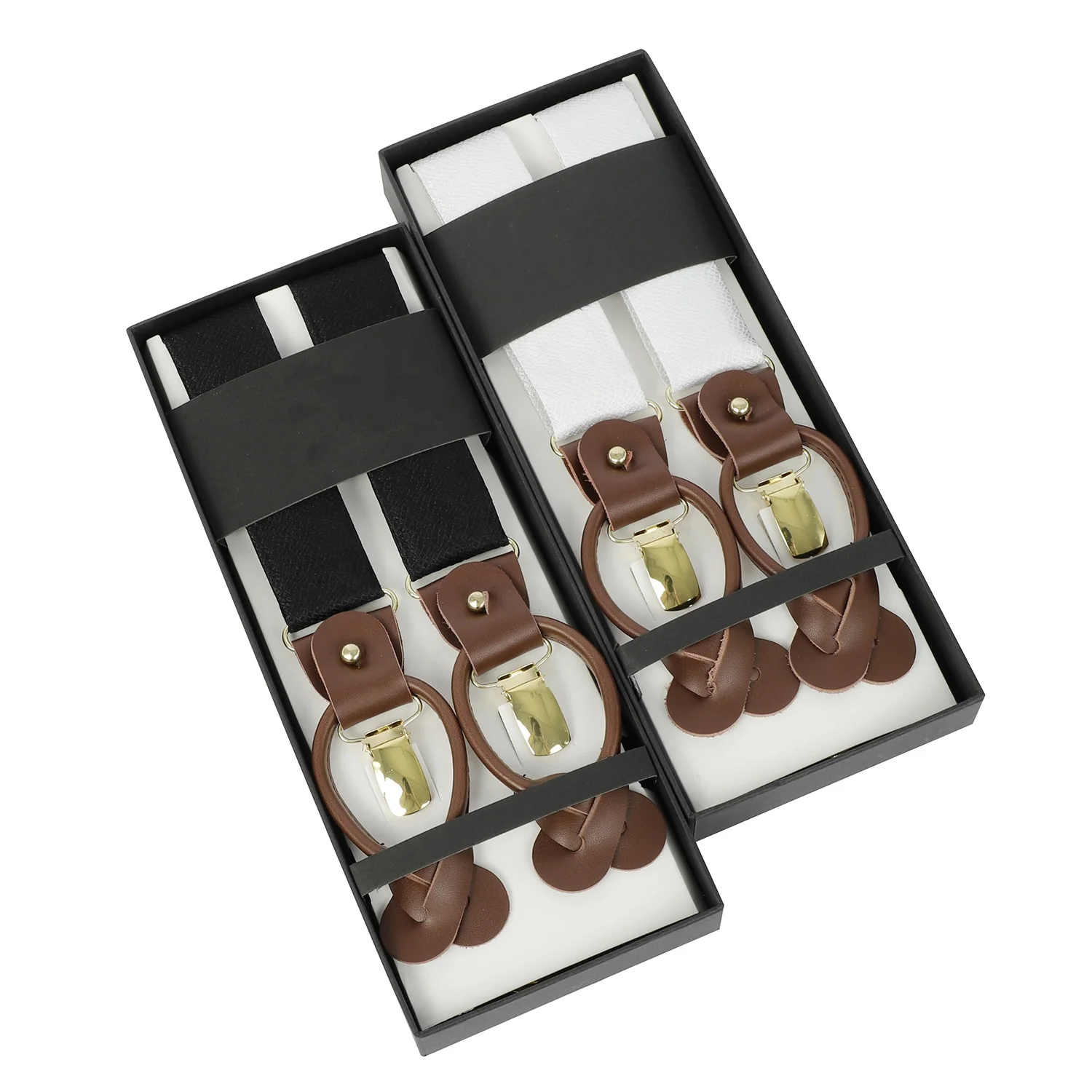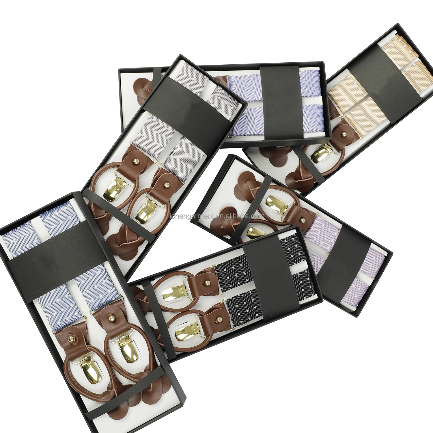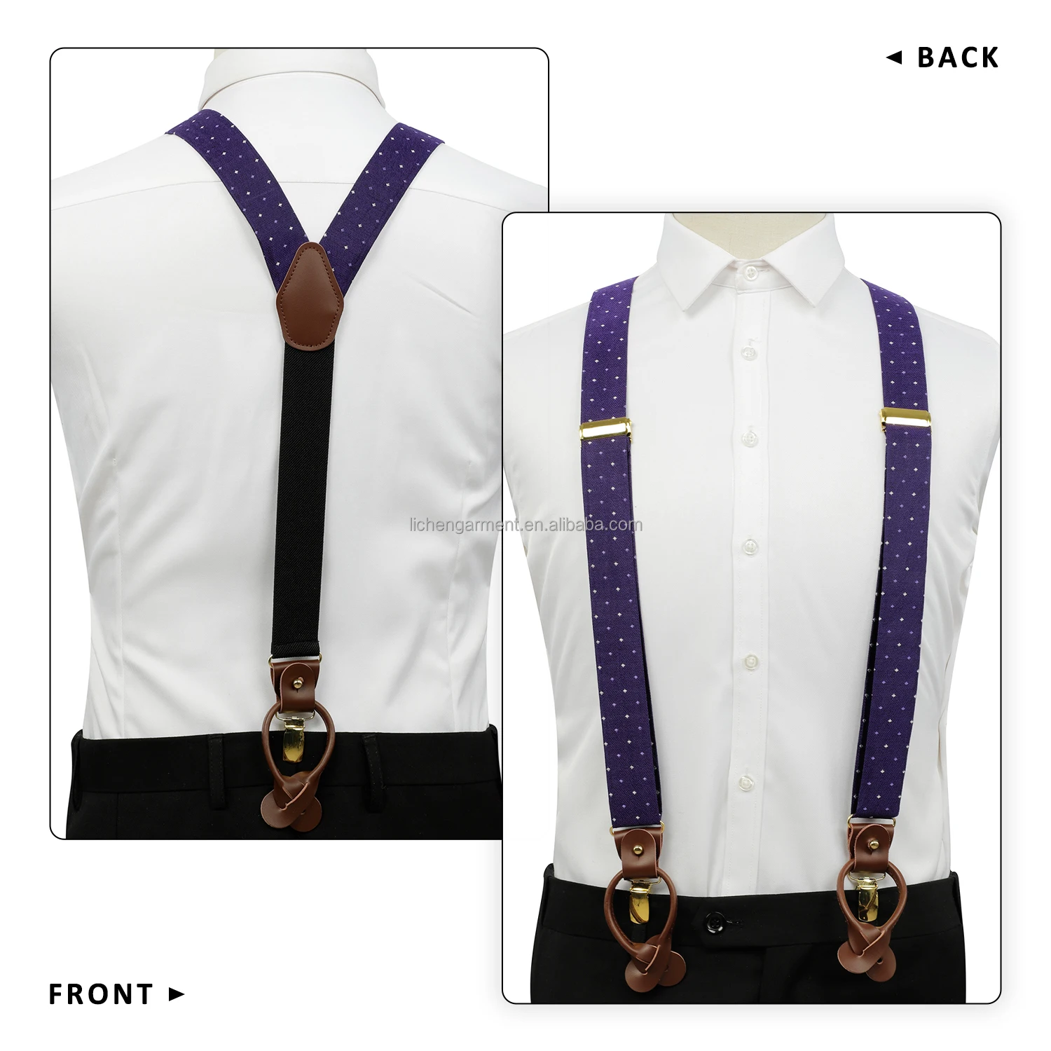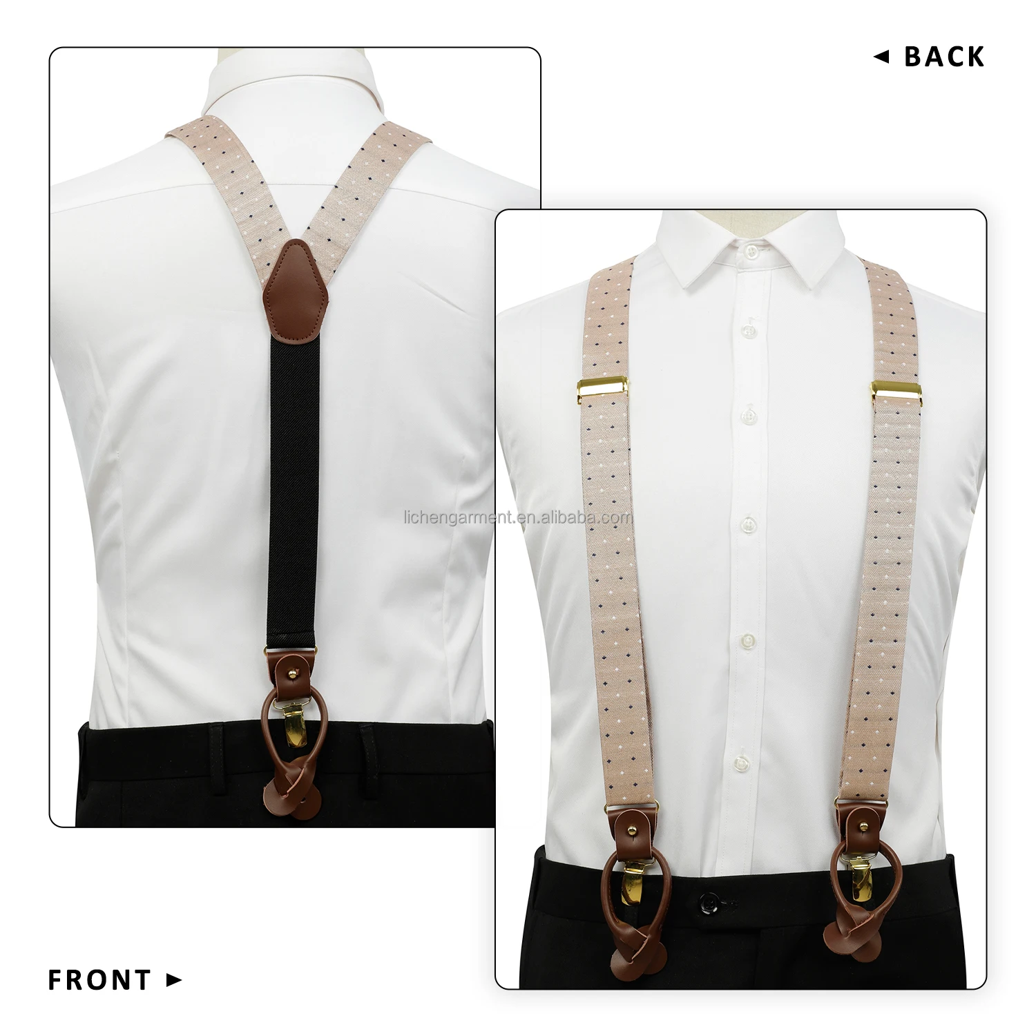 Silk Jacquard Fabric Mens Adjustable Fabric End Suspenders Y-Back Elastic Tuxedo Suspenders with Heavy Duty Leather Buttons End