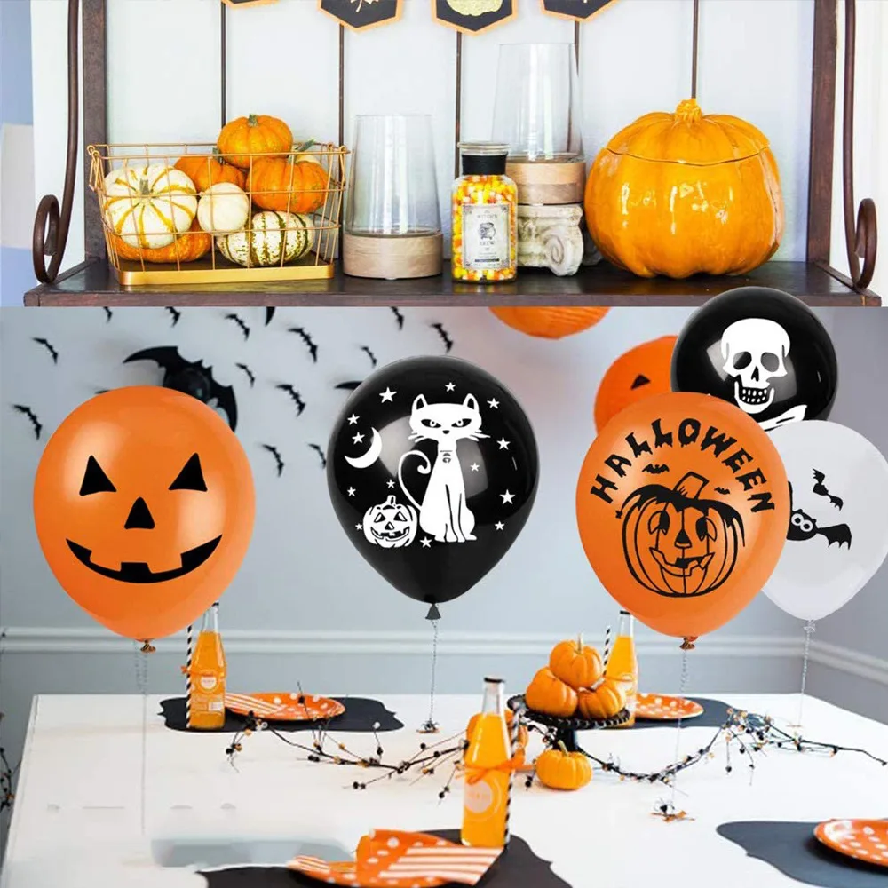 100 PCS Halloween Decoration Bat Pumpkin Head Latex Balloon Black White Orange Ghost Festival Decoration Arrangement