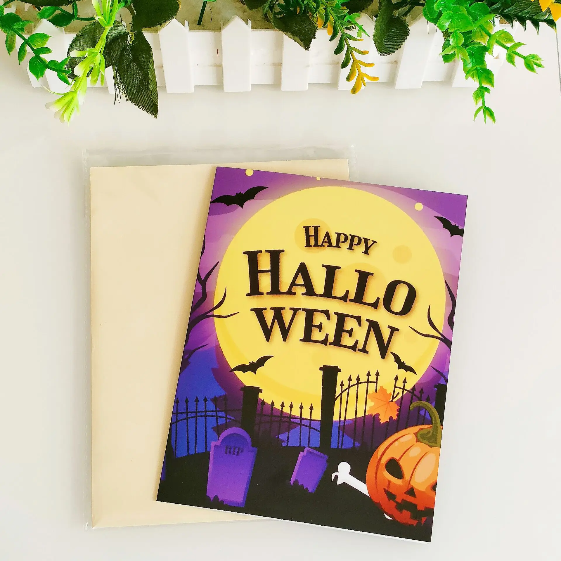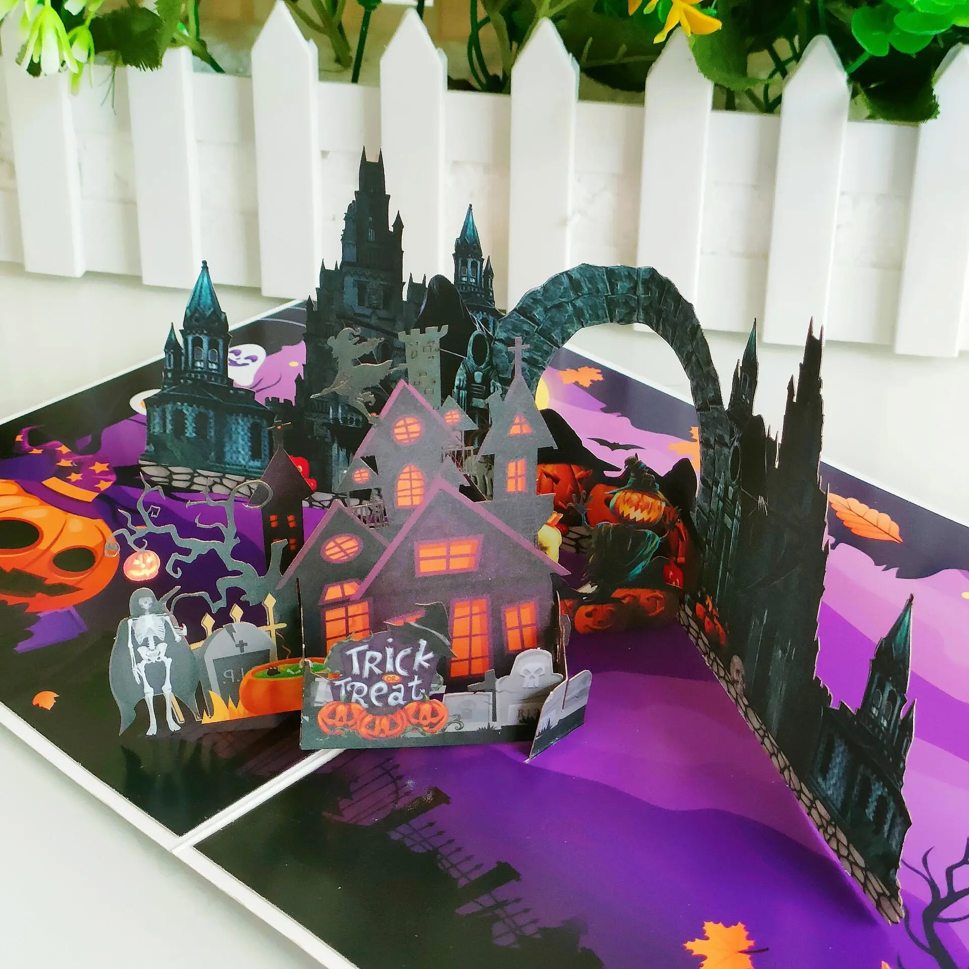 2024 Halloween Gift Greeting Card Castle Object Skeleton Man Handmade Flat Greeting Card for Kids