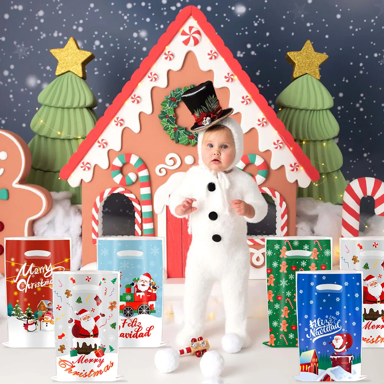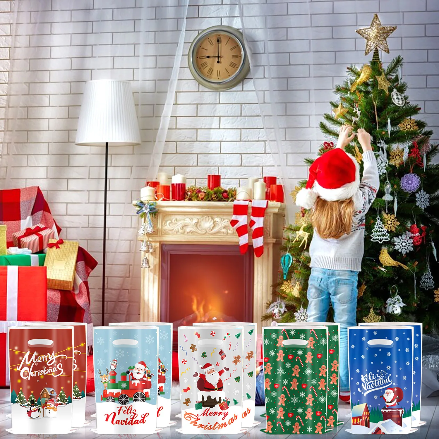 Christmas gift bag Cartoon children's party supplies Decorative New Year's candy bag Plastic bag