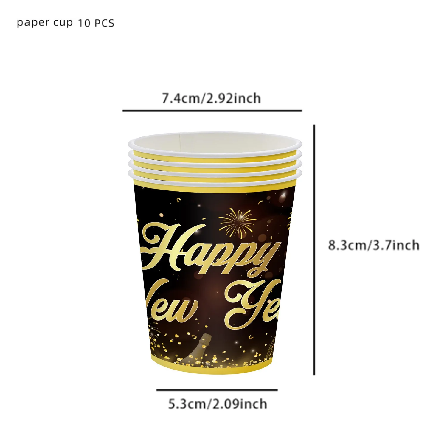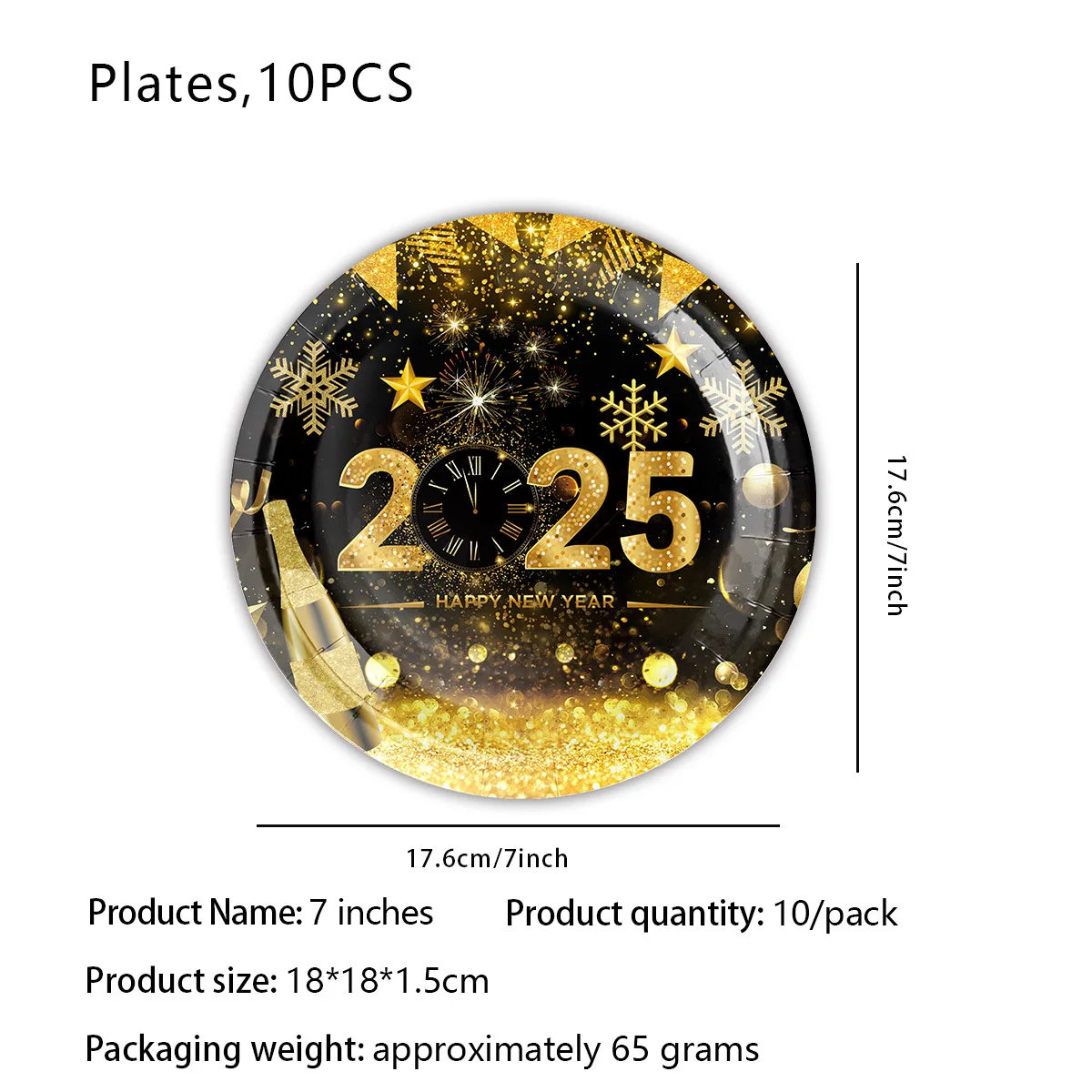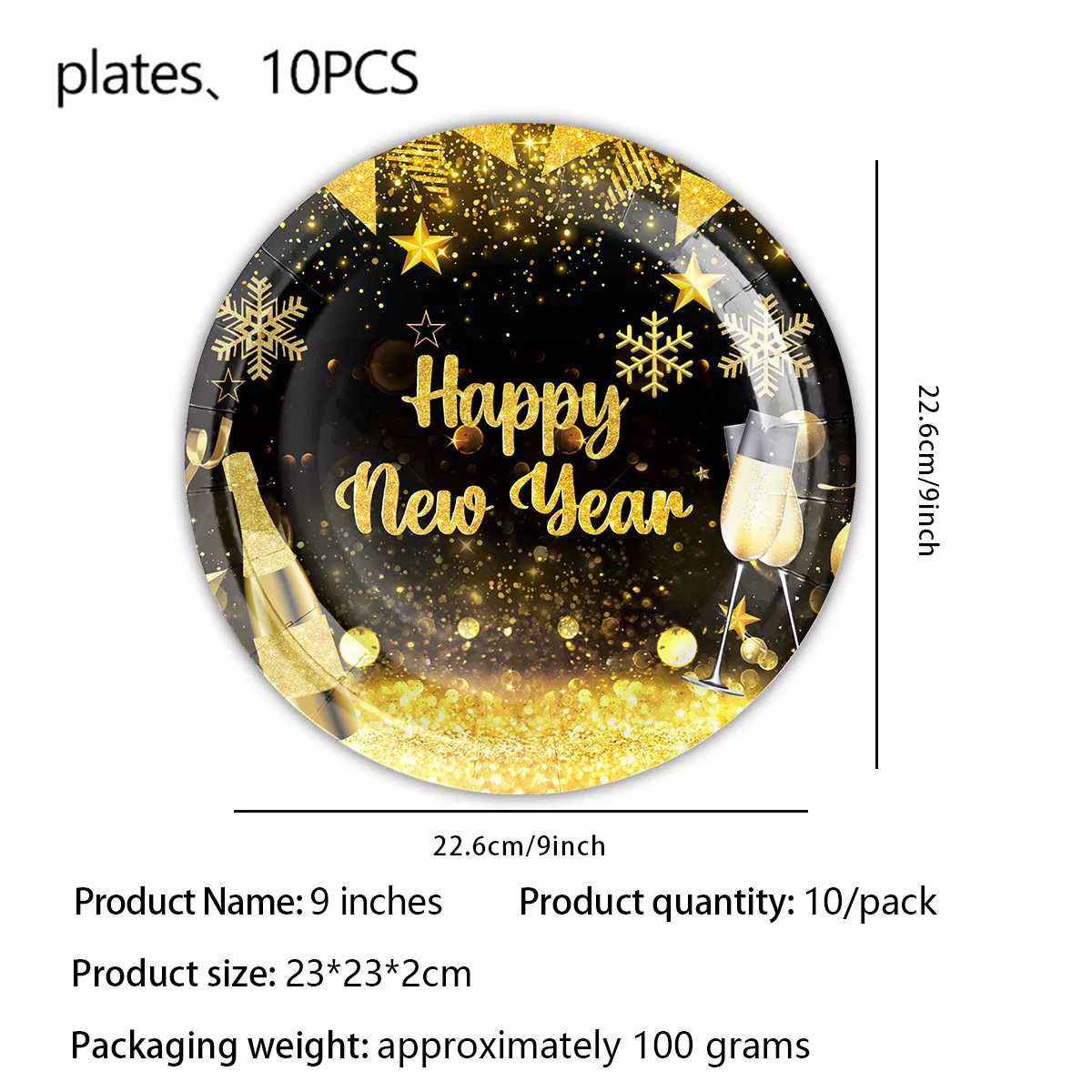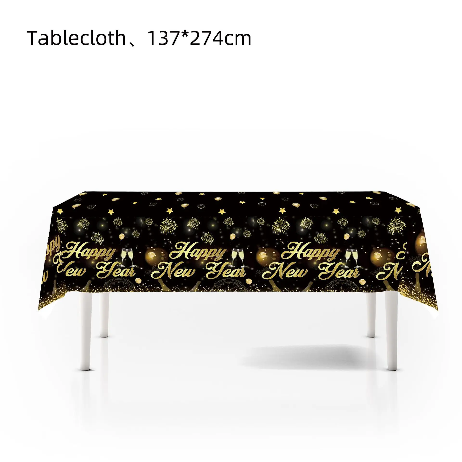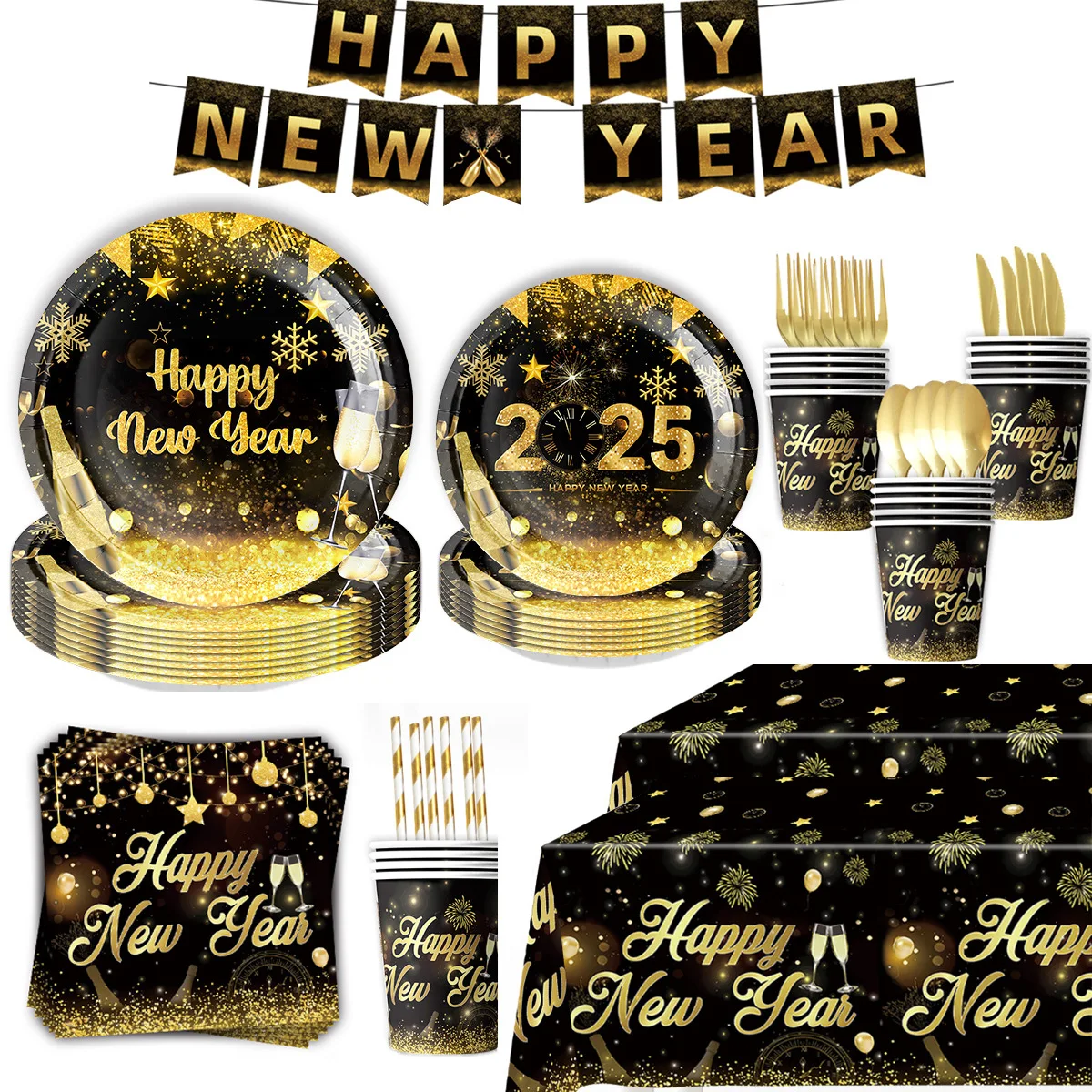 New Year party tableware set Black gold paper plate party decoration banner New Year party supplies