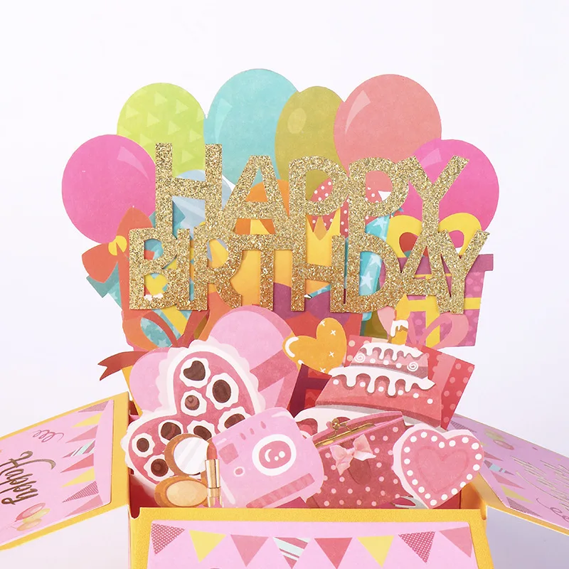 3D Birthday Card Happy Birthday Greeting Card Handmade Creative High-end Black Folding Greeting Card