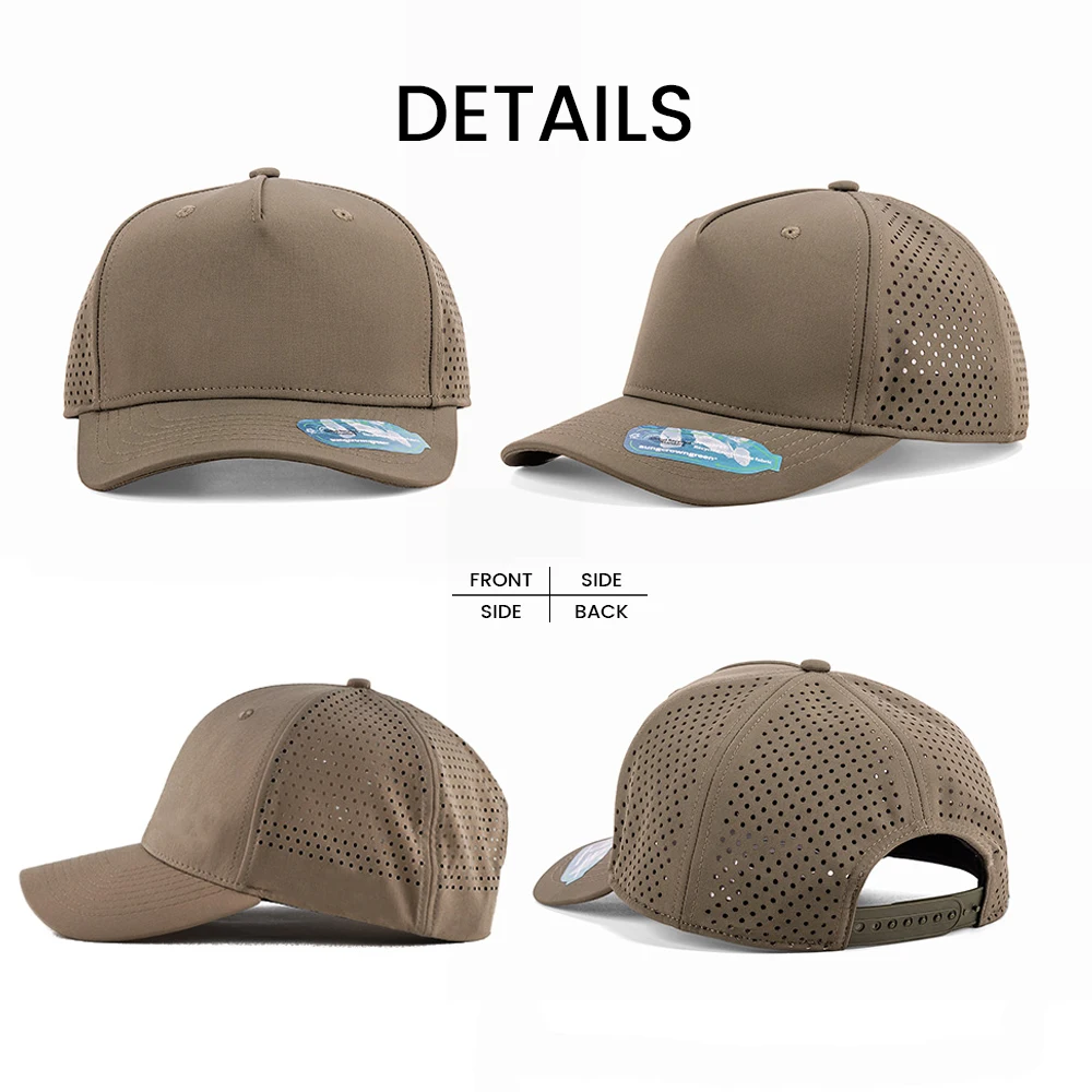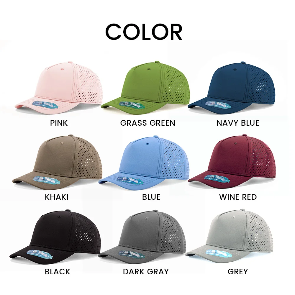 1.Product Name | Golf hat gorras laser cut hole sport polyester waterproof quick dry 5 panel rubber pvc logo baseball cap with rope | ||