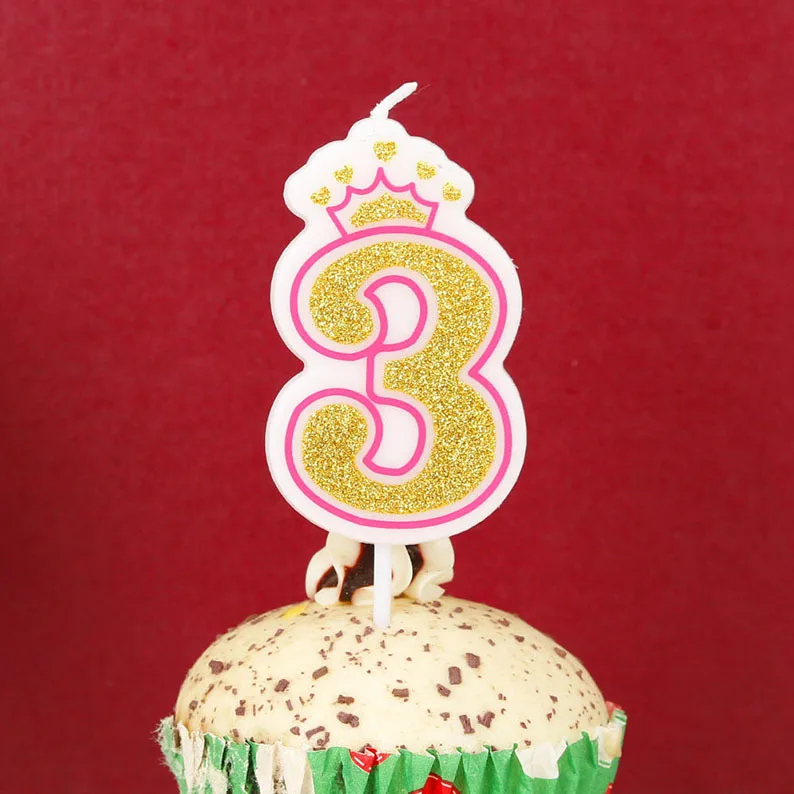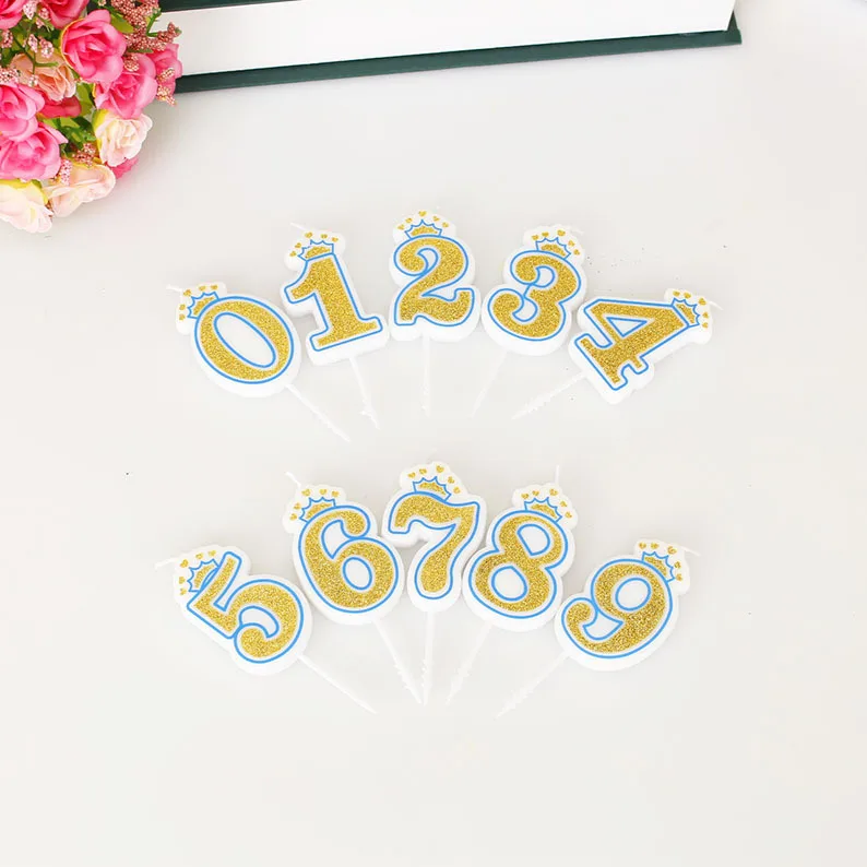 Digital Candle Creative Crown 0-9 Baby Year Cake Gold Dust Digital DIY Party Birthday Candle